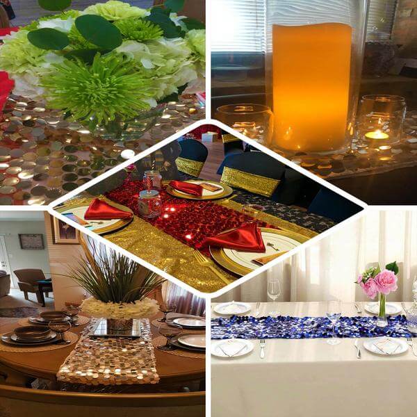 Big Payette Sequin 13"x108" Table Runner Iridescent Blue - Dazzling Design