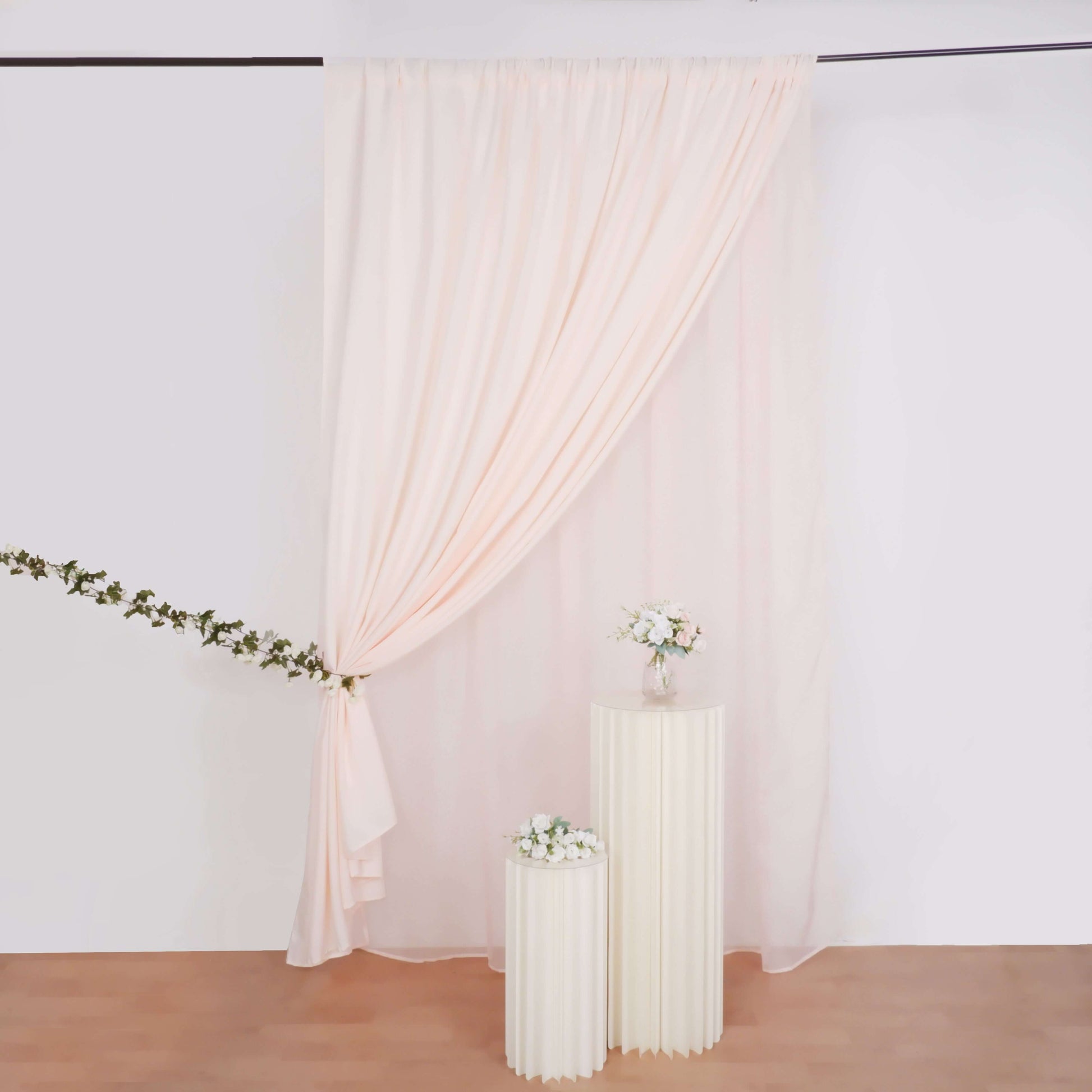 Blush Chiffon Polyester Event Curtain Drapes, Dual Layer Divider Backdrop Curtain Panels with Rod Pockets - 10ftx10ft