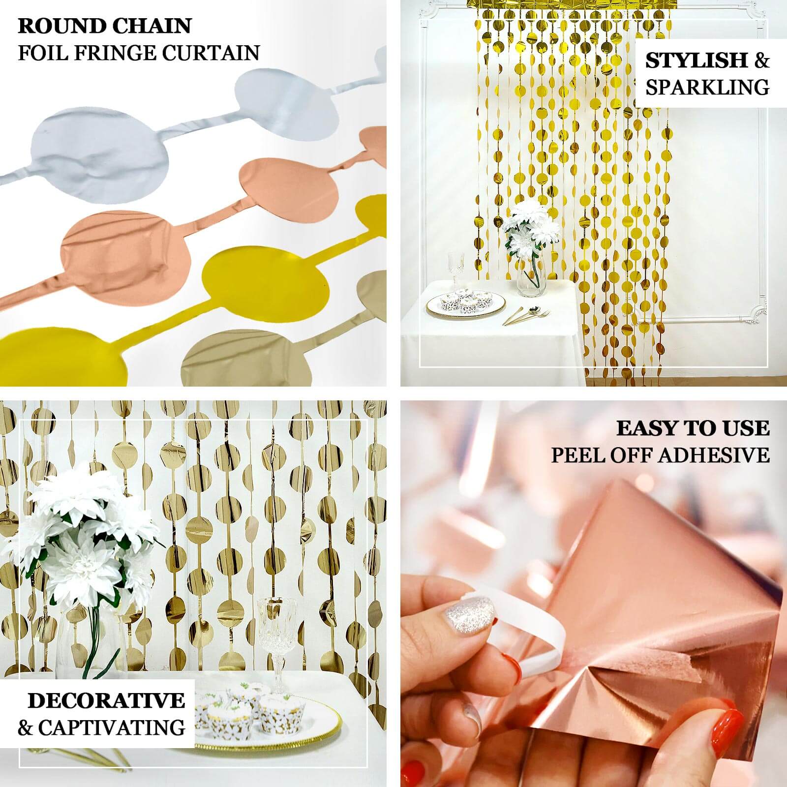 Champagne Round Chain Foil Fringe Curtain Party Backdrop, Metallic Champagne Tinsel Streamer Party Decor - Door Window Foil Curtain - 3ftx6.5ft