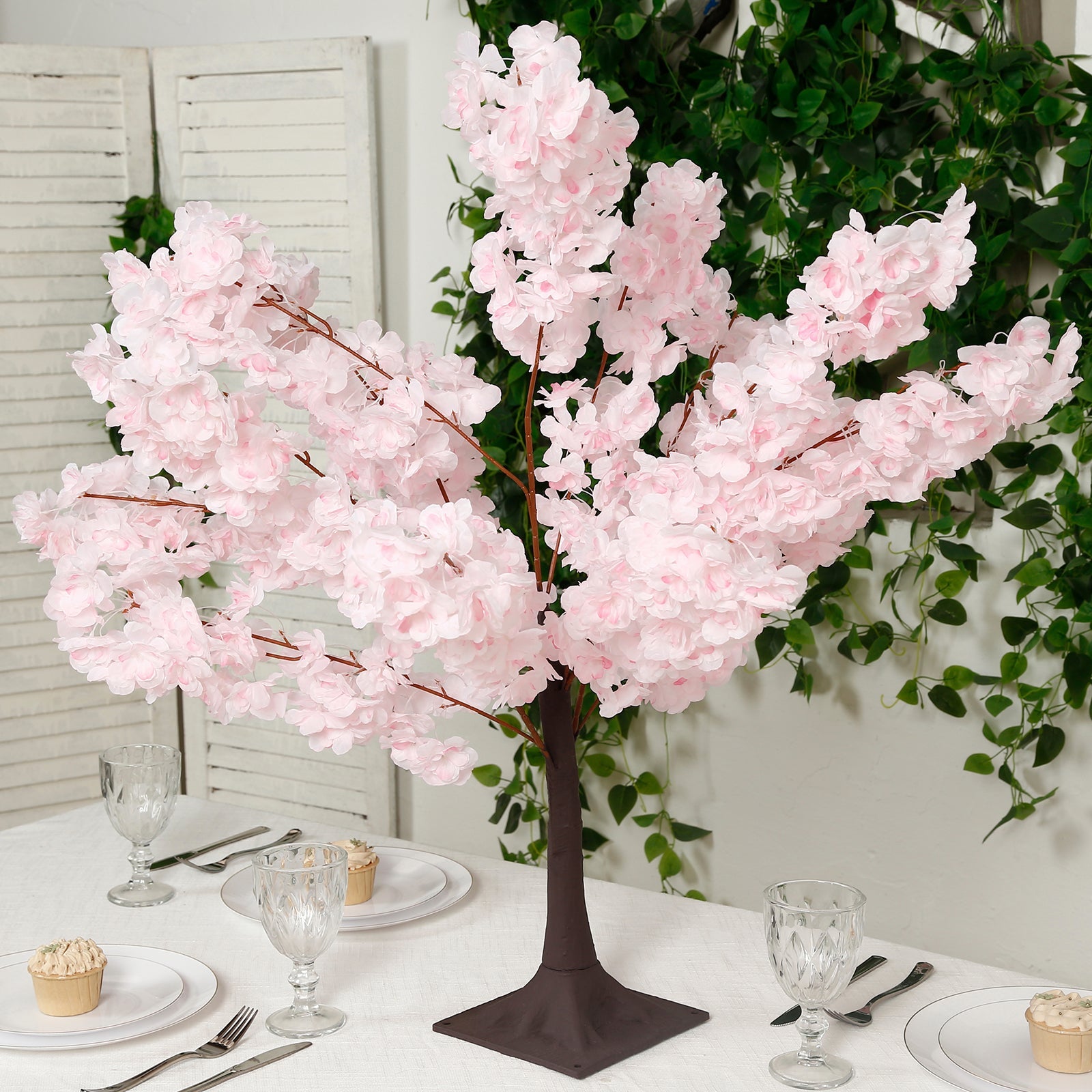 Silk Cherry Blossom Tree Centerpiece 3ft Blush – Lifelike Artificial Sakura Wishing Tree with Metal Base