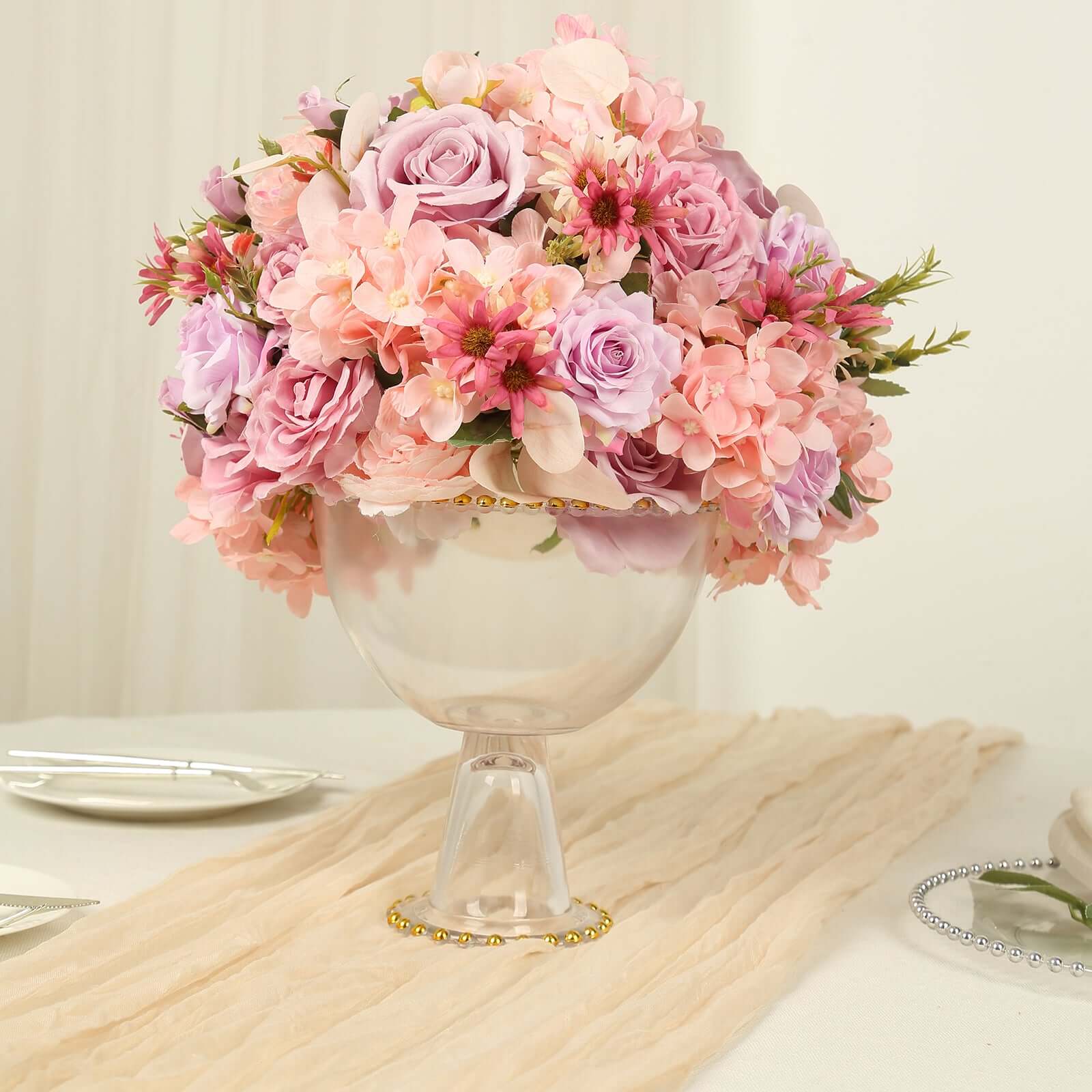 Compote Pedestal Bowl Glass Flower Vase Clear with Gold Beaded Rim - Footed Candy Trifle Bowl for Displays 8"