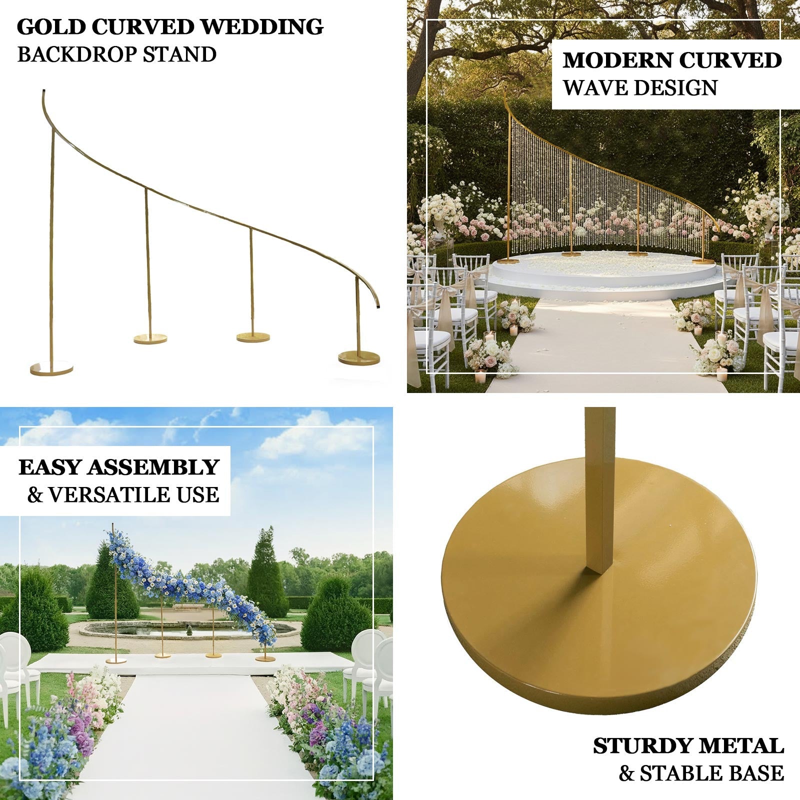 8ft x 12ft Curved Wave Wedding Arch Backdrop Stand – Gold Heavy-Duty Metal Frame for Event, Balloon & Floral Décor