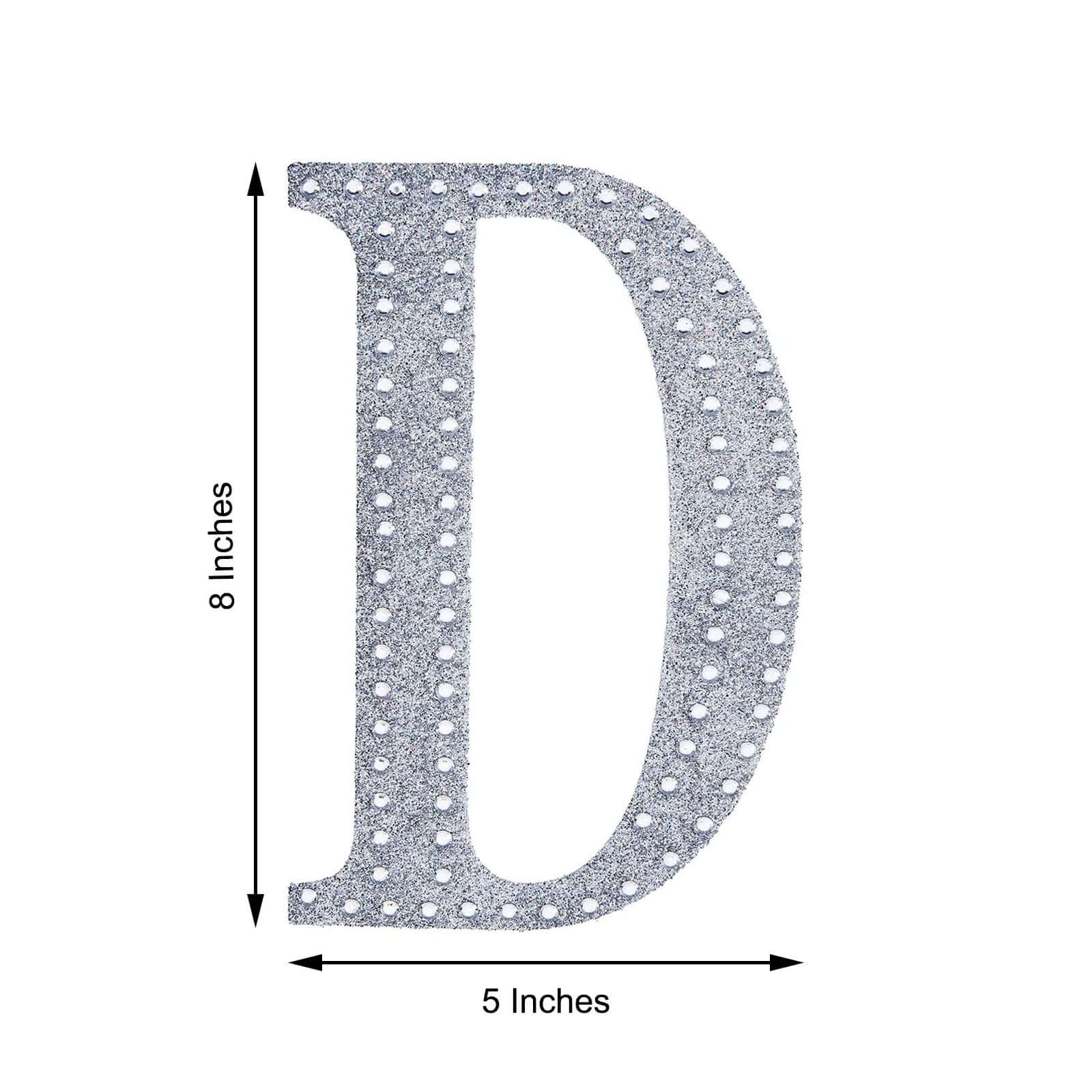 Decorative Rhinestone Alphabet "D" Letter Stickers, Glitter Adhesive Craft Letters Silver DIY Sparkle Embellishments 8"