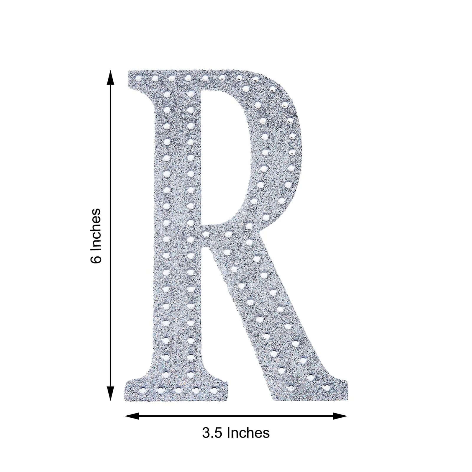 Decorative Rhinestone Alphabet "R" Letter Stickers, Glitter Adhesive Craft Letters Silver DIY Sparkle Embellishments 6"