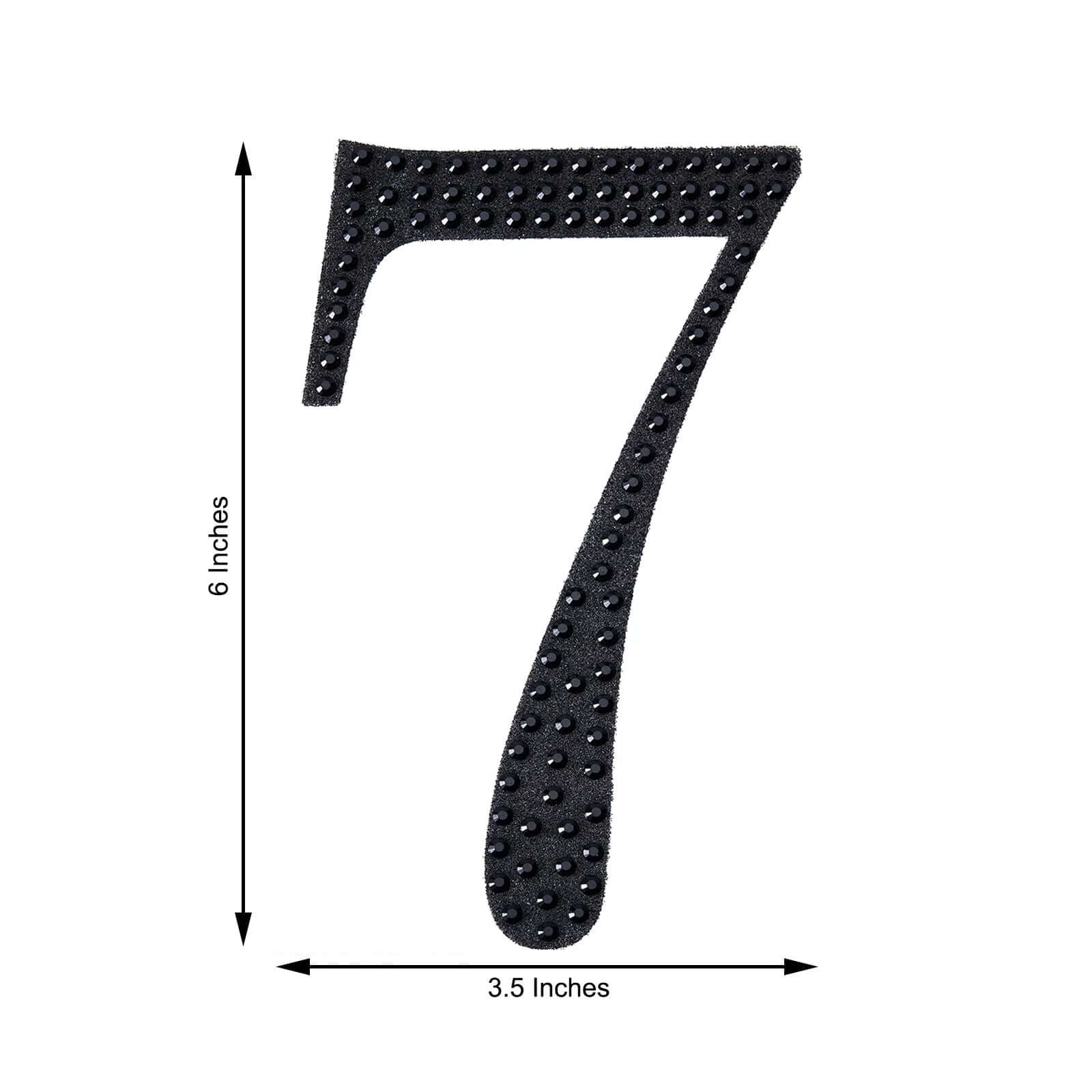 Decorative Rhinestone Number "7" Stickers, Glitter Adhesive Craft Numbers Black DIY Sparkle Embellishments 6"