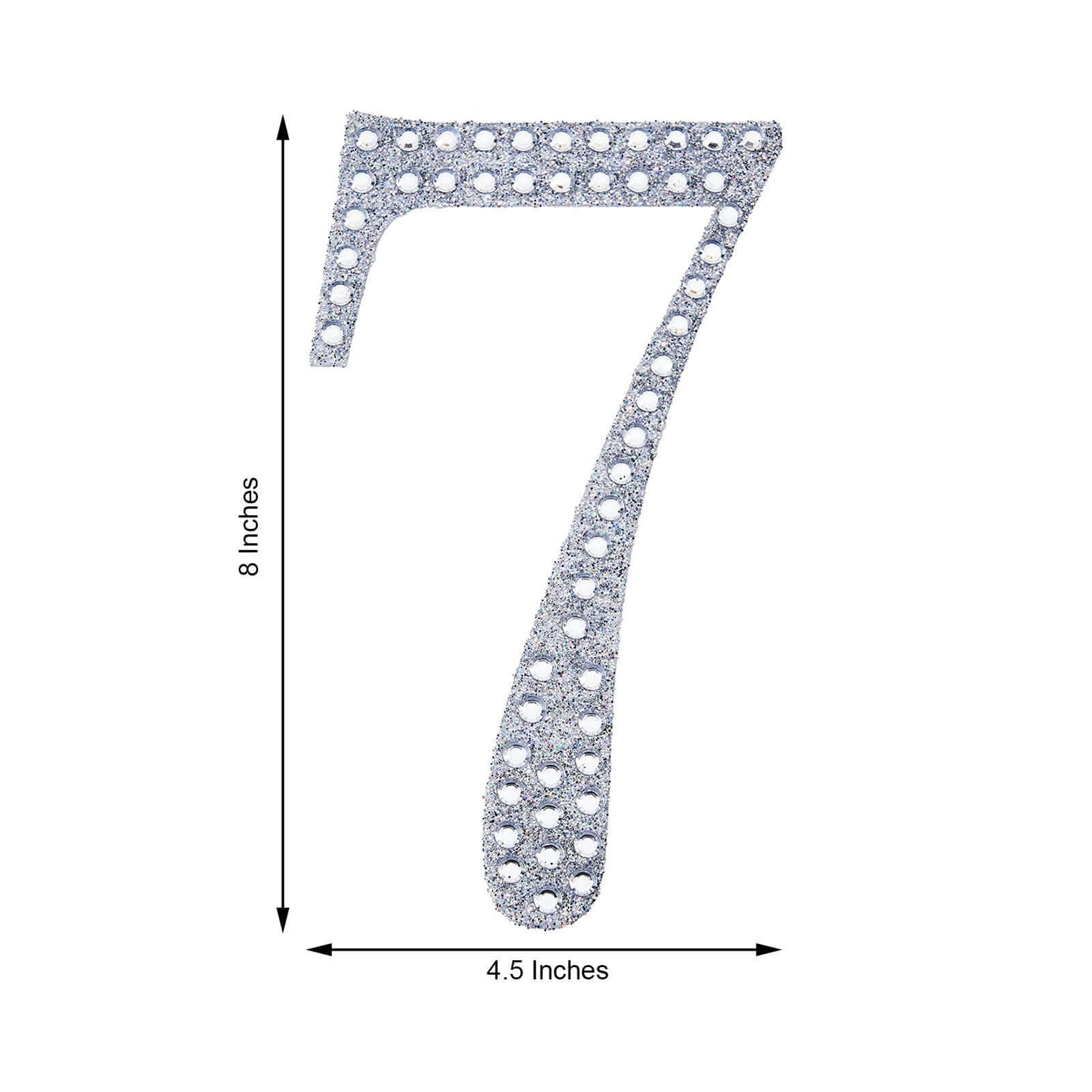 Decorative Rhinestone Number "7" Stickers, Glitter Adhesive Craft Numbers Silver DIY Sparkle Embellishments 8"