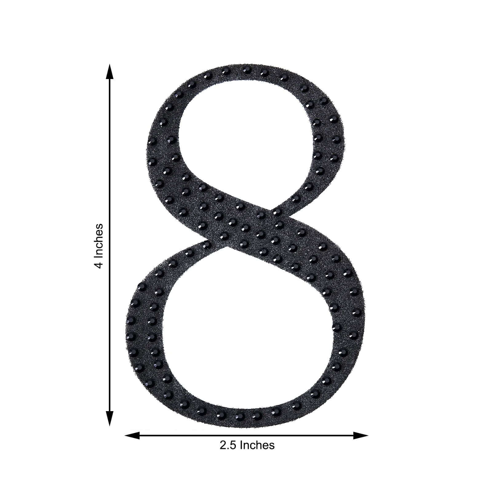Decorative Rhinestone Number "8" Stickers, Glitter Adhesive Craft Numbers Black DIY Sparkle Embellishments 4"