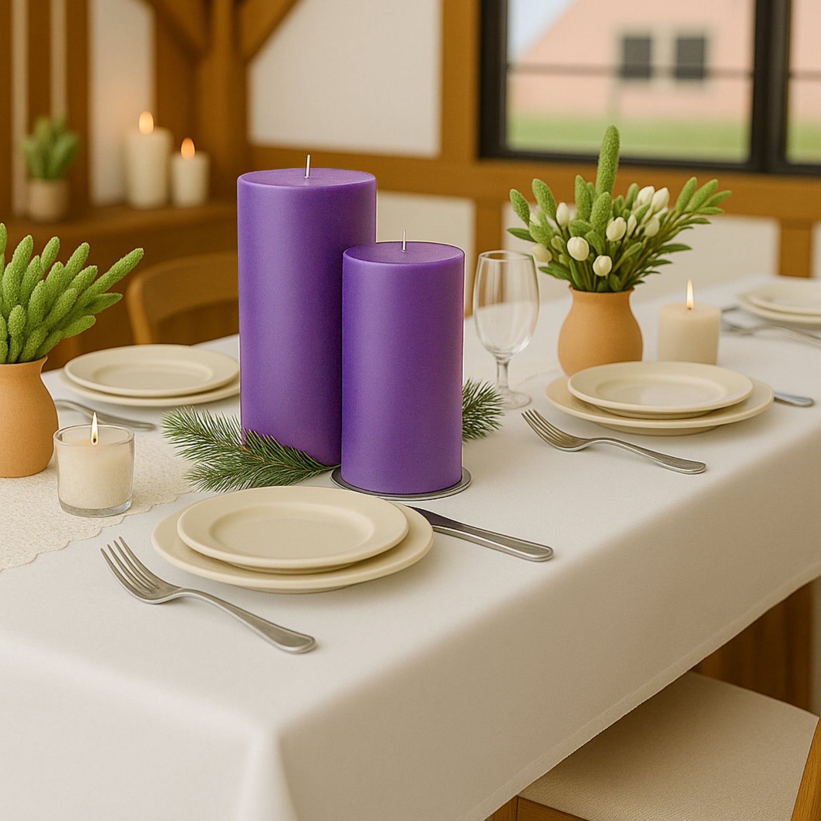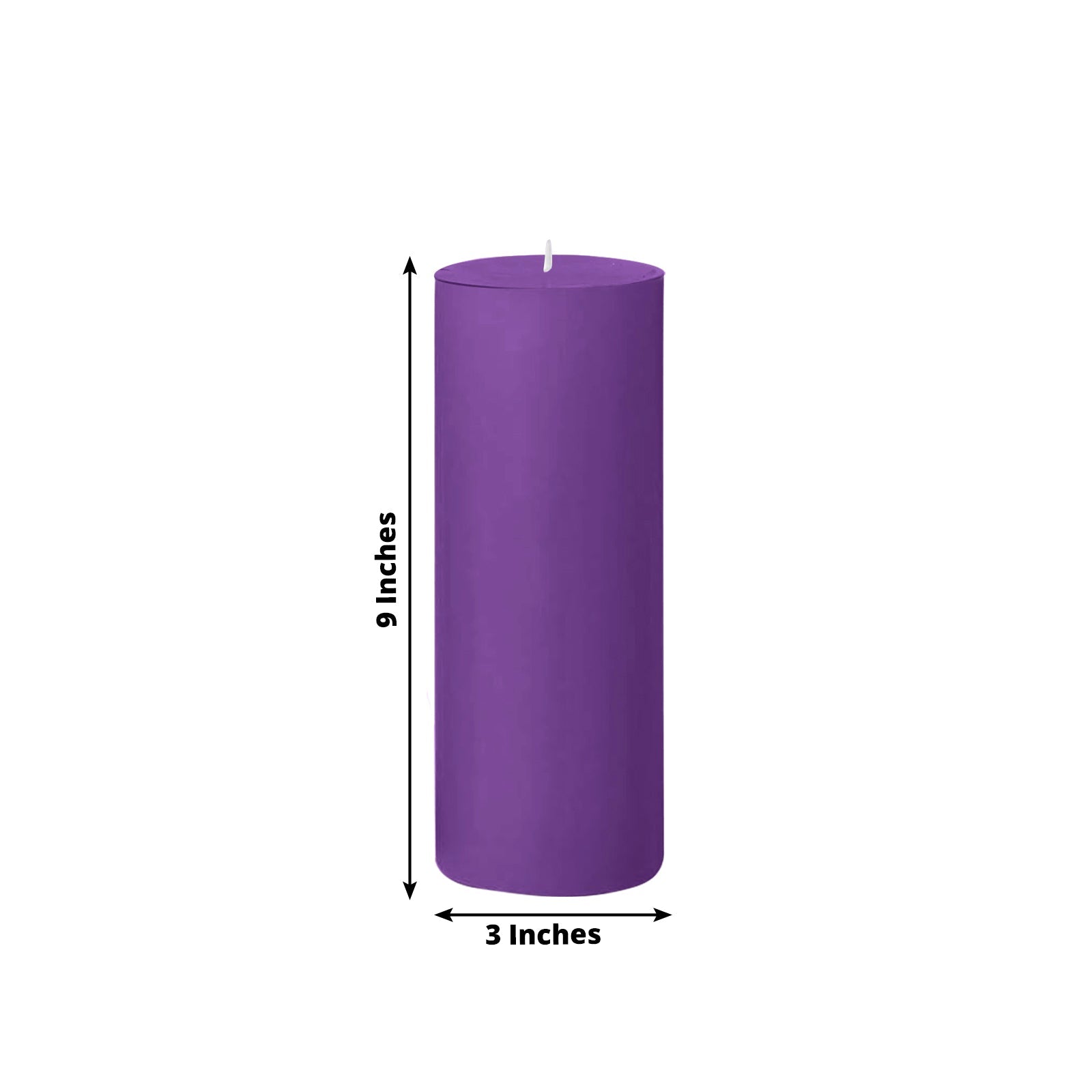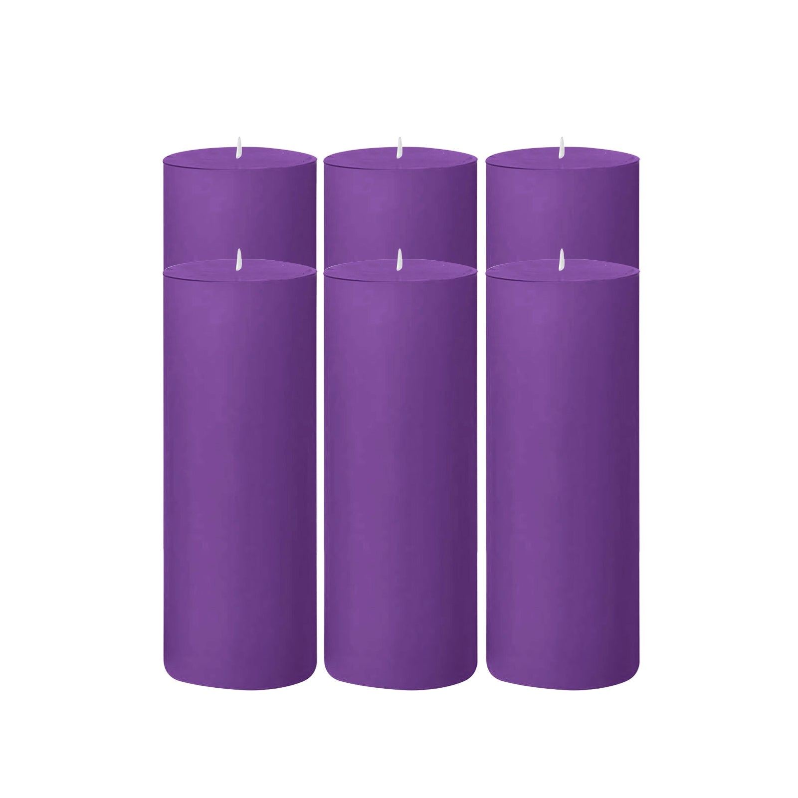 6-Pack Unscented Dripless Pillar Candles – 3"x9" Purple Paraffin Wax with Smokeless Cotton Wicks, Clean & Long-Lasting 90-Hour Burn