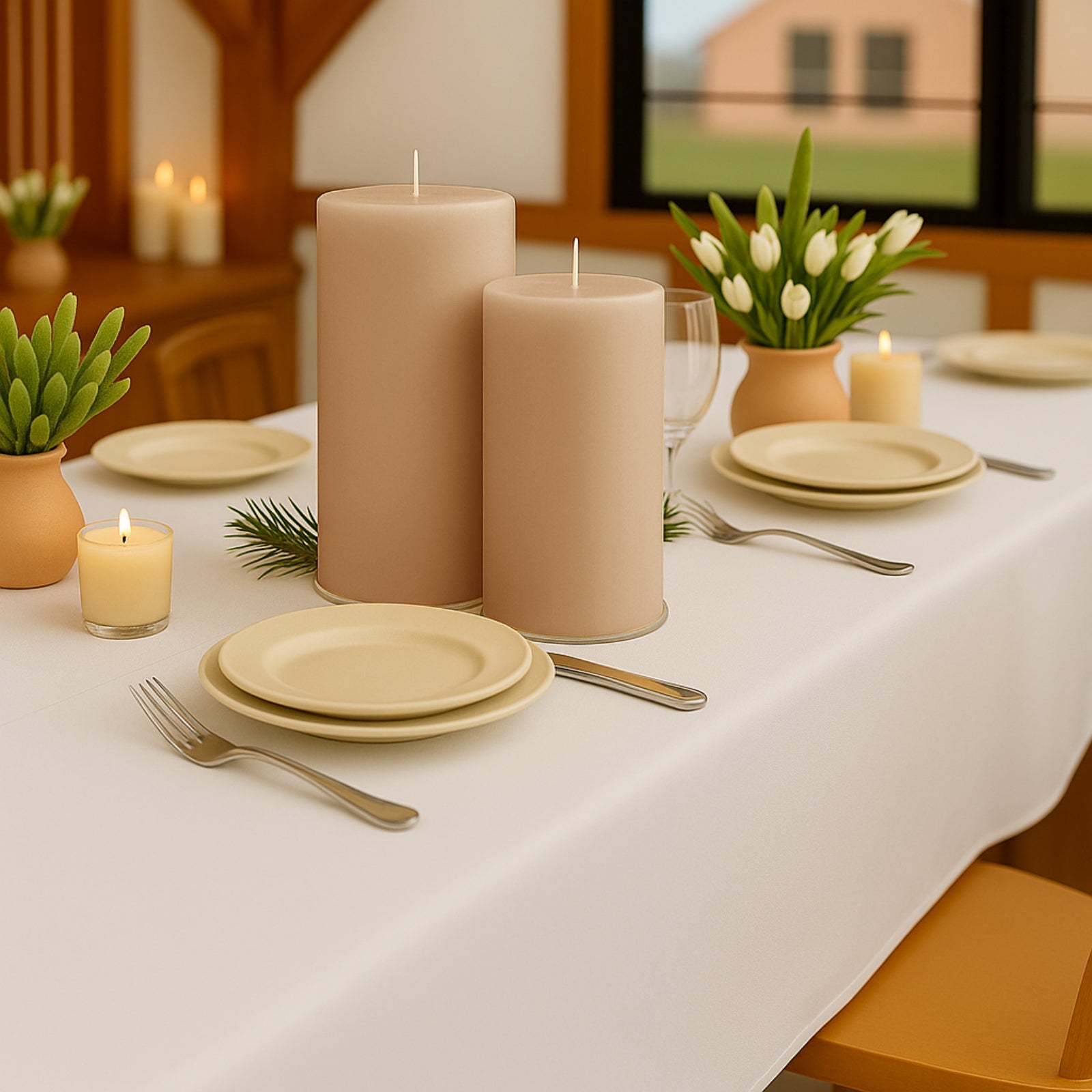 6-Pack Unscented Dripless Pillar Candles – 3"x9" Beige Paraffin Wax with Smokeless Cotton Wicks, Clean & Long-Lasting 90-Hour Burn