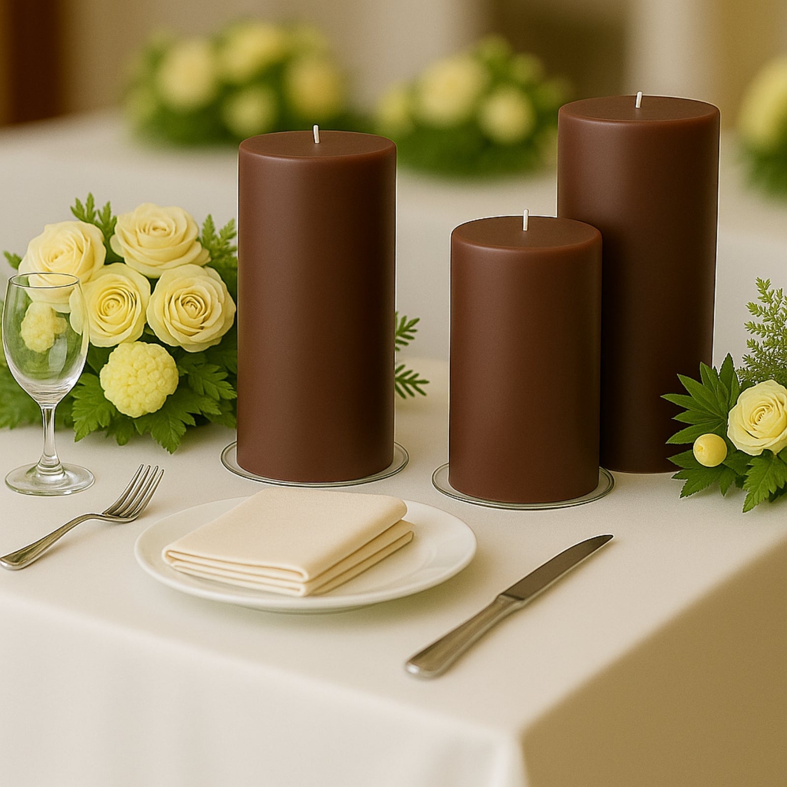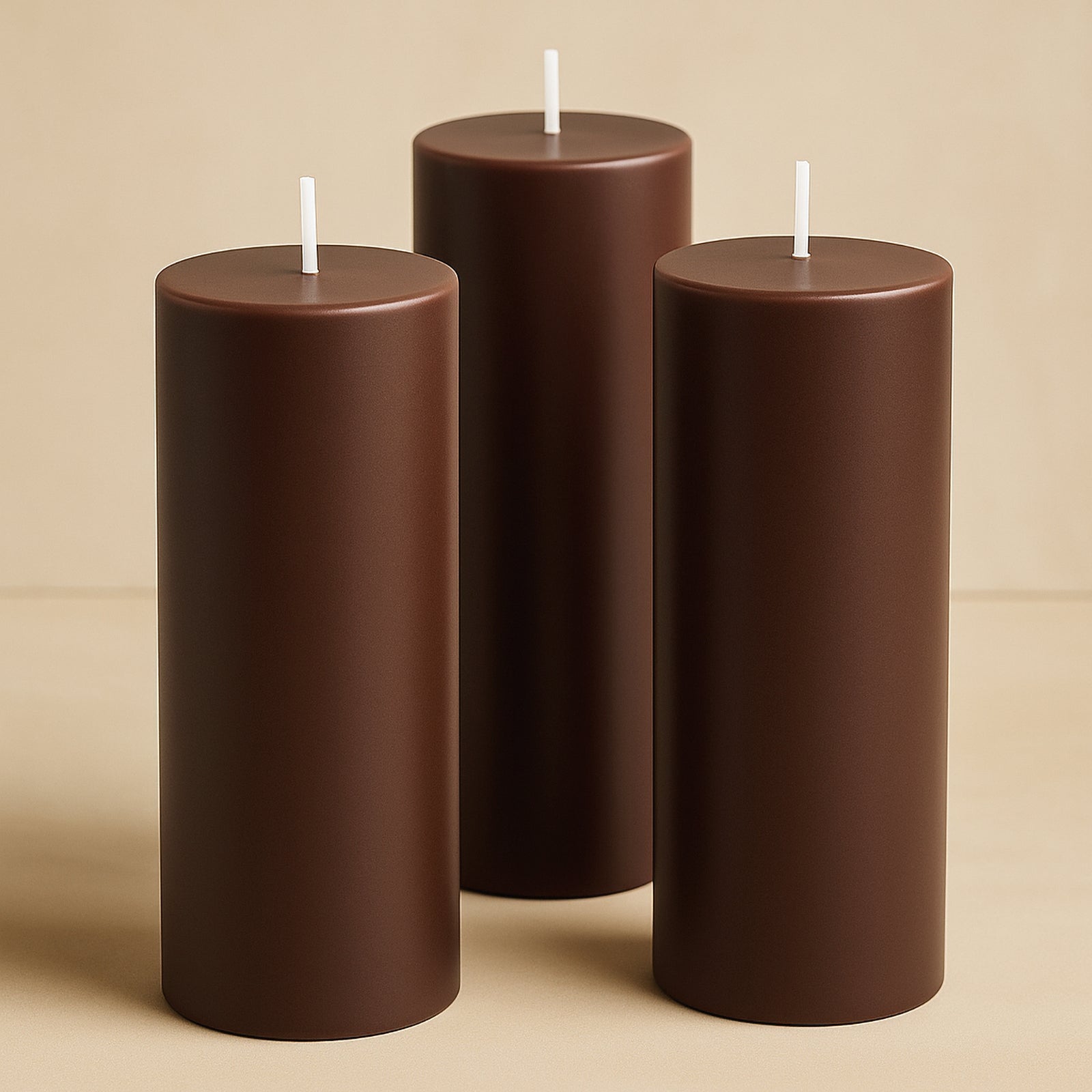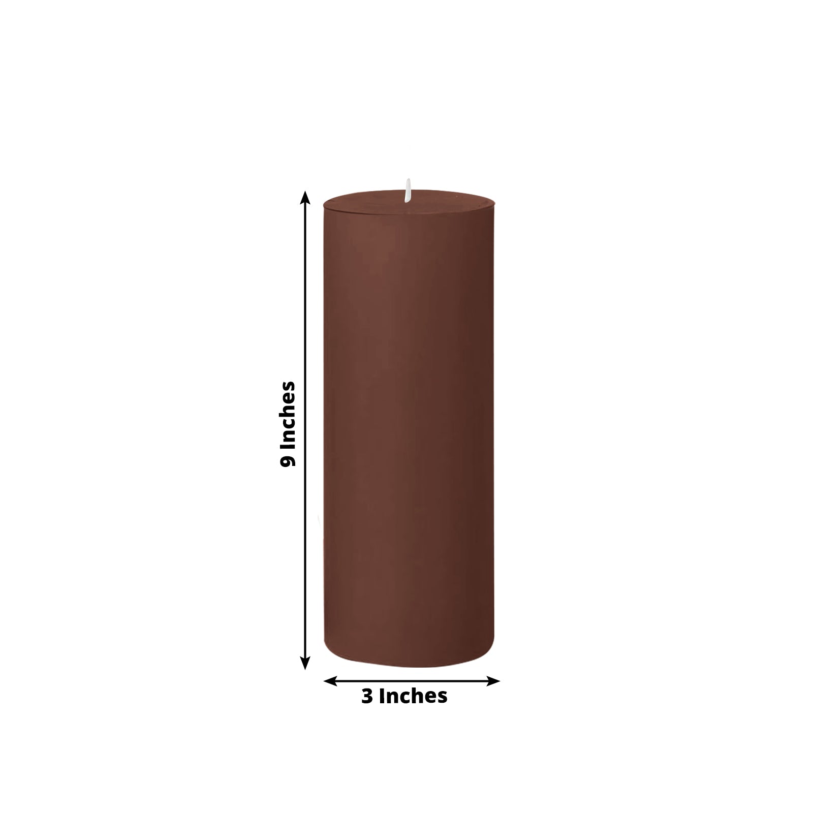 6-Pack Unscented Dripless Pillar Candles – 3"x9" Cinnamon Brown Paraffin Wax with Smokeless Cotton Wicks, Clean & Long-Lasting 90-Hour Burn