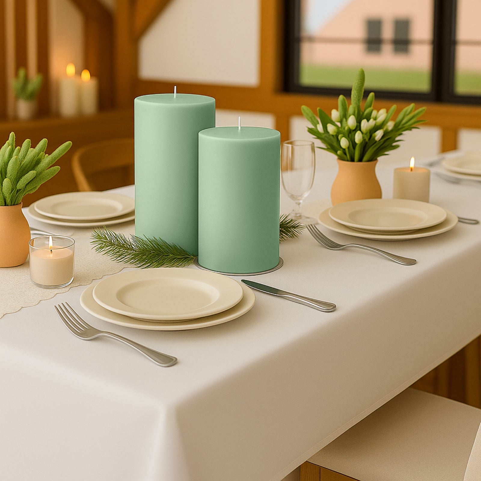 6-Pack Unscented Dripless Pillar Candles – 3"x9" Sage Green Paraffin Wax with Smokeless Cotton Wicks, Clean & Long-Lasting 90-Hour Burn