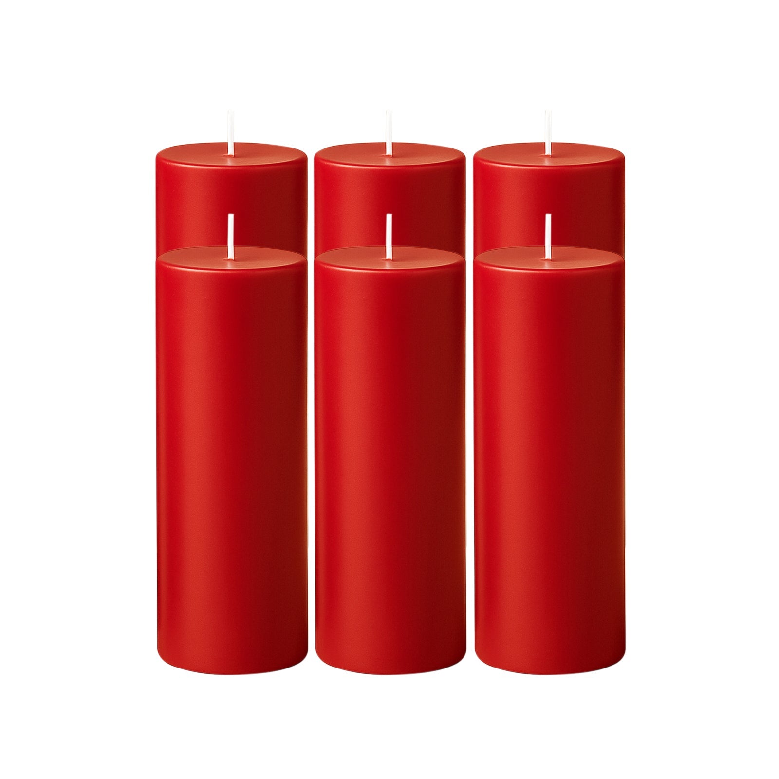 6-Pack Unscented Dripless Pillar Candles – 3"x9" Red Paraffin Wax with Smokeless Cotton Wicks, Clean & Long-Lasting 90-Hour Burn