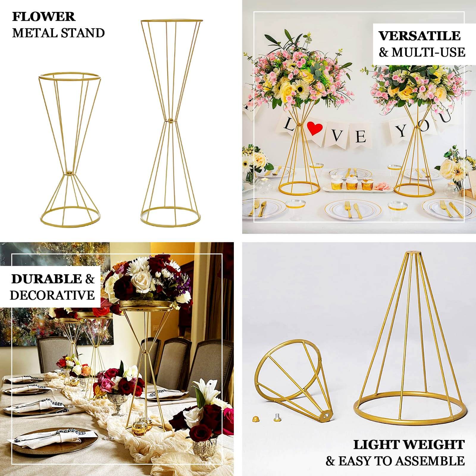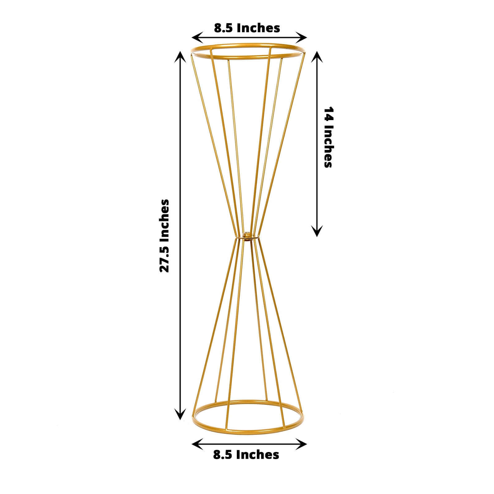 Dual Cone Reversible Flower Stand Gold Metal Geometric Pedestal - Wedding Centerpiece 27"