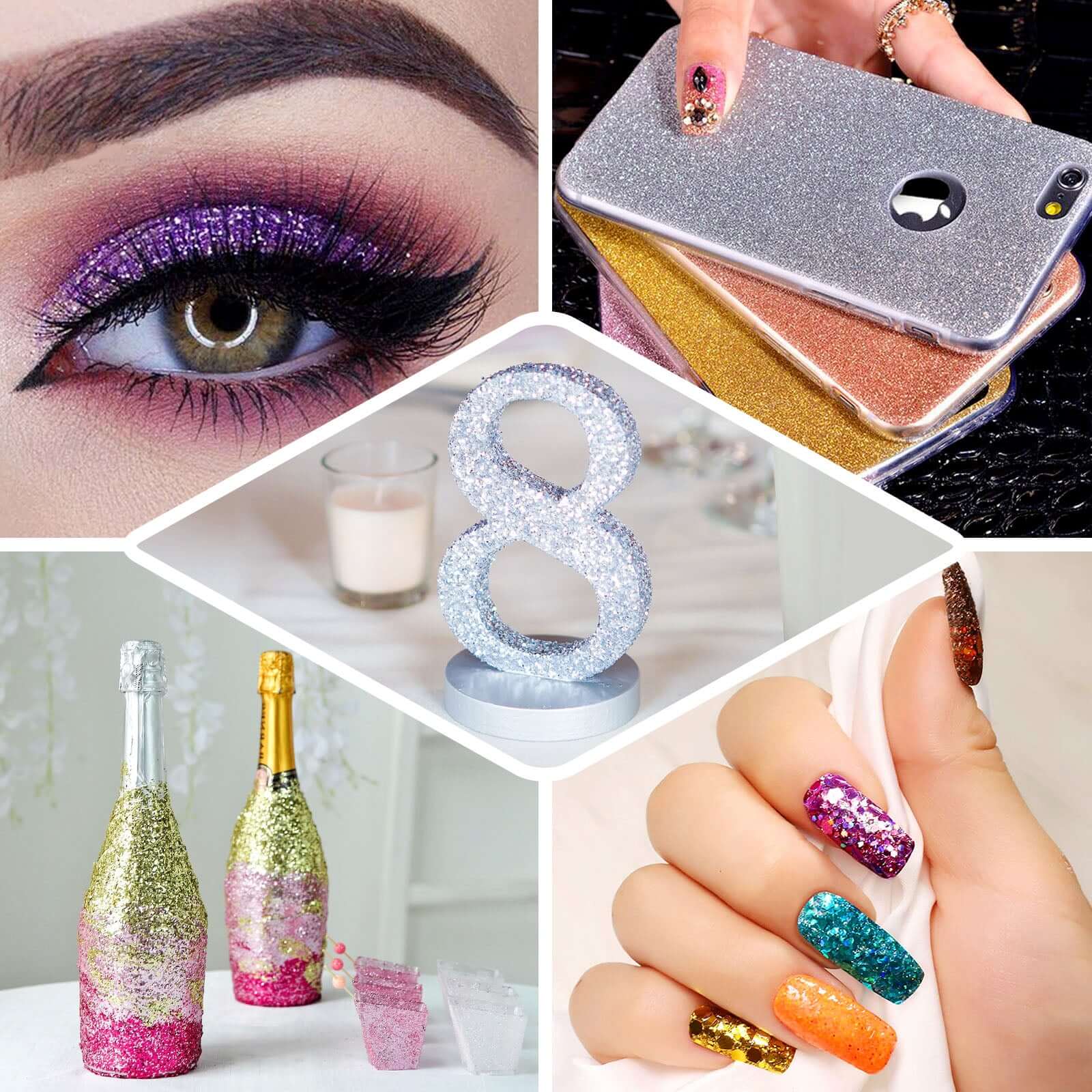 - Uses: Fillers, Makeup, Nail and Body Arts, DIY crafts, Art Projects, and Centerpiece Decor