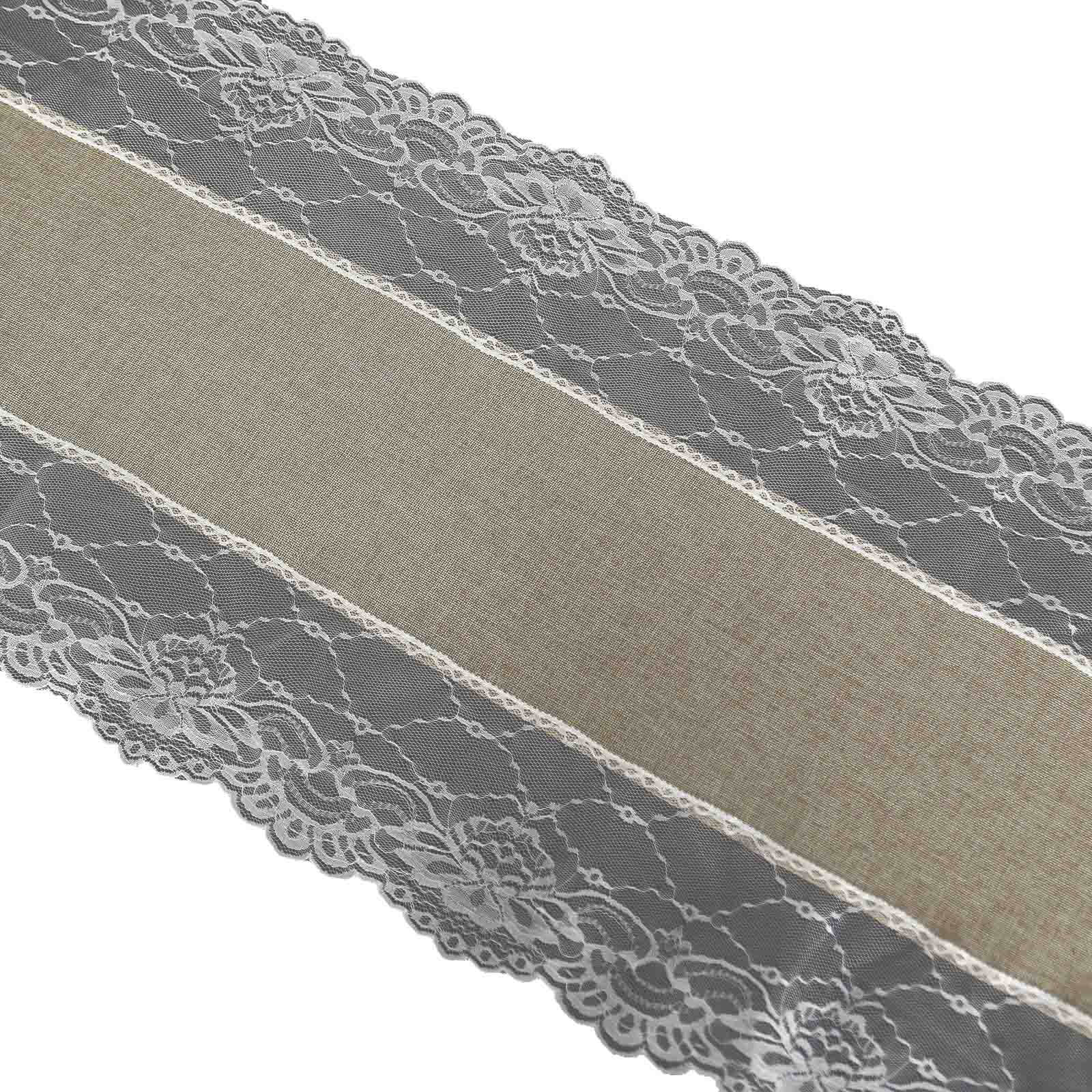 Faux Burlap Jute 16"x108" Table Runner Taupe With White Lace Edging - Rustic Farmhouse Table Linen