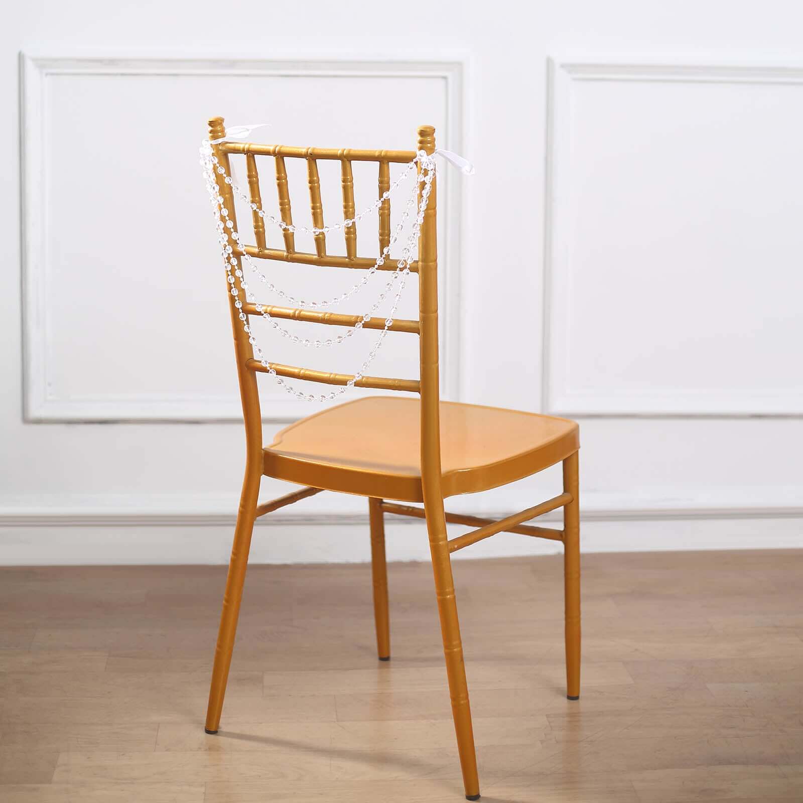 Faux Pearl Beaded 16" Chair Back Garland Sash Clear Gatsby-Inspired Style - Pre-Tied Chic Wedding Decor for Chiavari Chairs