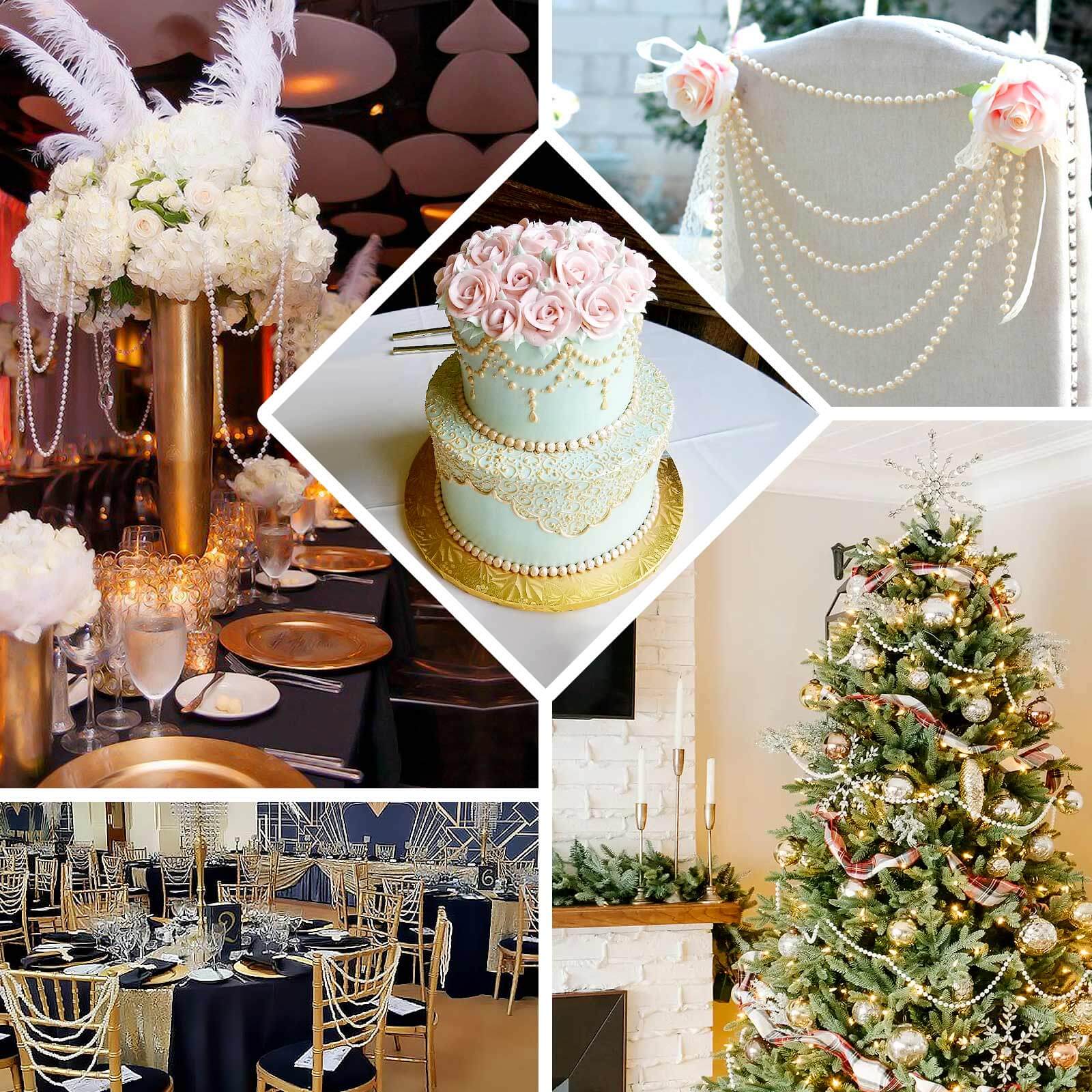 Faux Pearl Beaded 16" Chair Back Garland Sash White Gatsby-Inspired Style - Pre-Tied Chic Wedding Decor for Chiavari Chairs