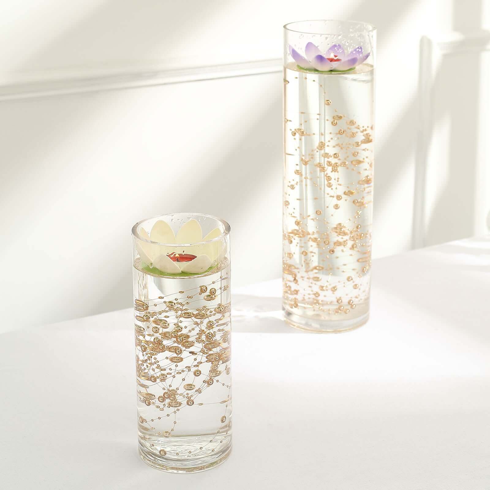| Floats once you add water to vase. Can cut to desired length |