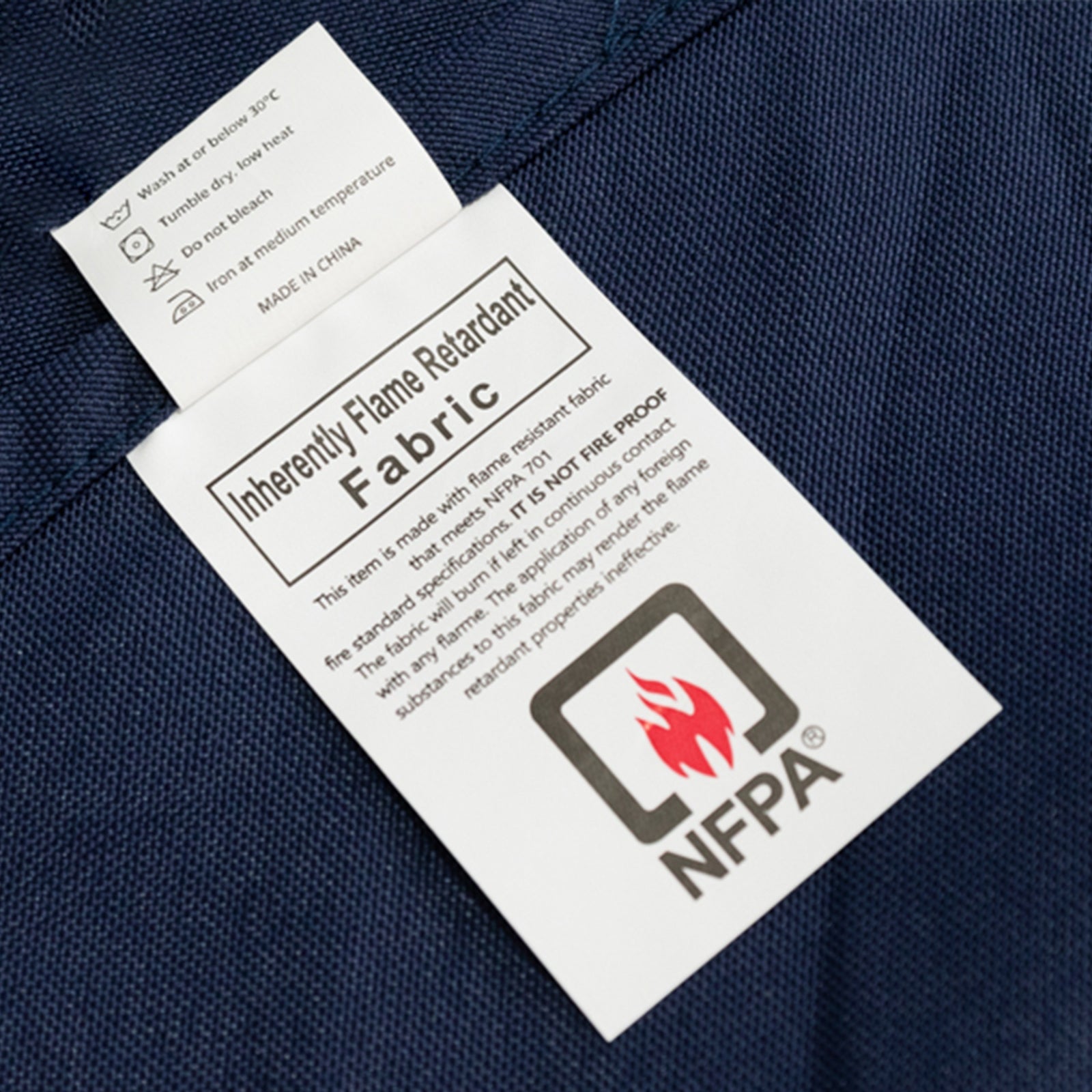 Inherently Flame Retardant (I.F.R): The highest level of fire protection for linens is the Inherently Fire Retardant. Our linens in this fabric line are tested by the accredited National Fire Protection Association (N.F.P.A.) 701 test, and certified as being fire retardant. Product came with IFR tags, The certificate and results will be Emailed to all customers that purchase this fabric line. |