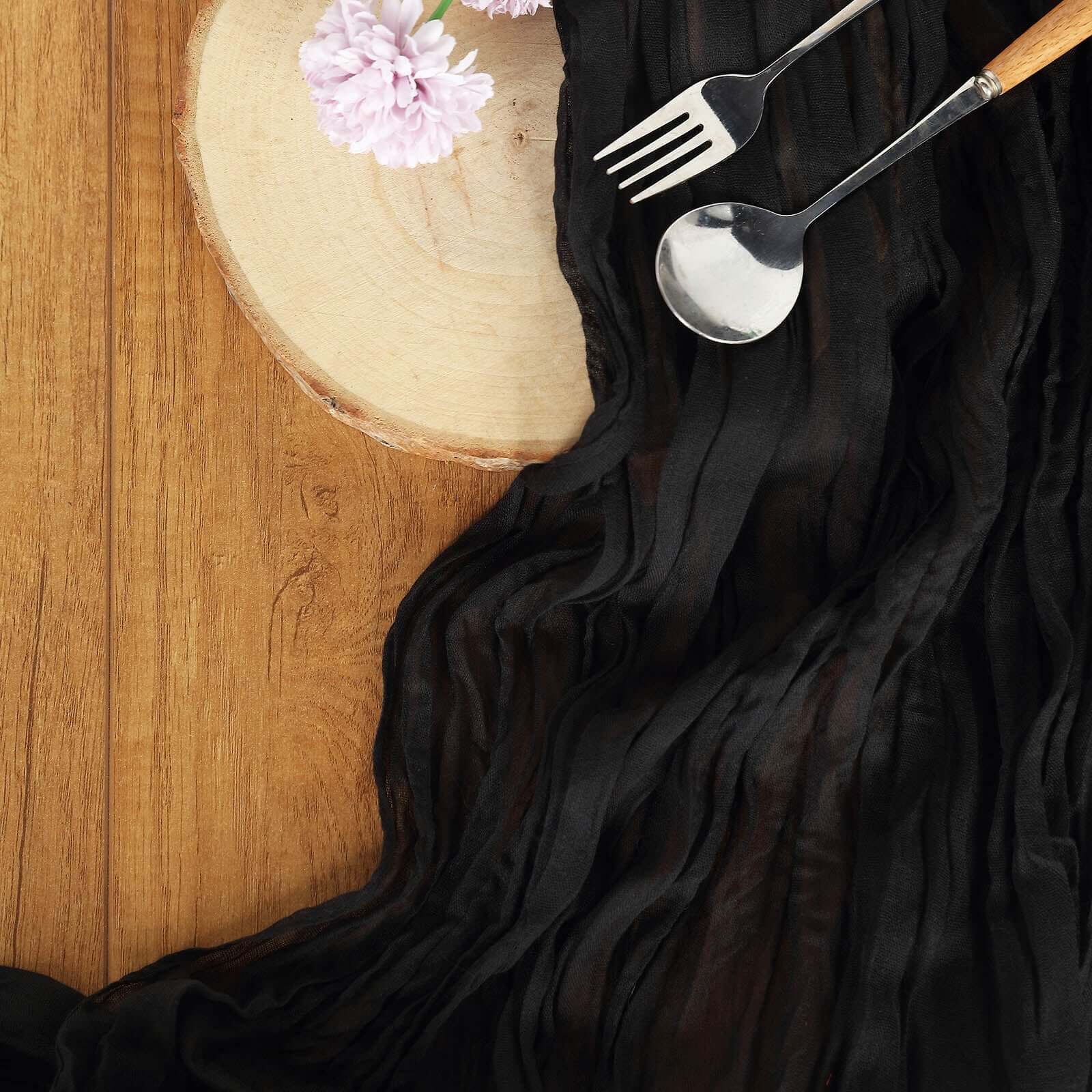 Gauze Cheesecloth 10ft Table Runner Black - Soft & Rustic Boho Linen Runner