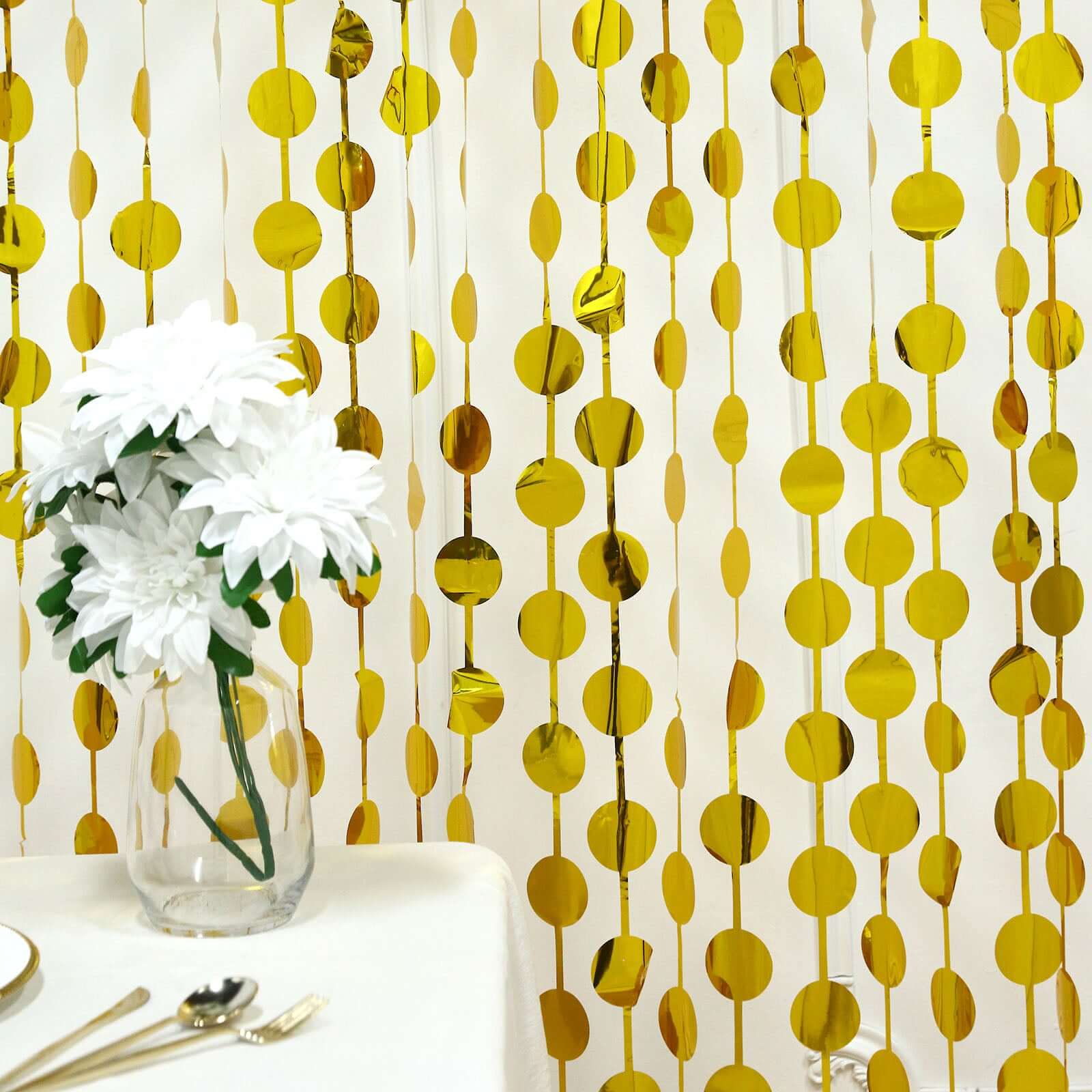Gold Round Chain Foil Fringe Curtain Party Backdrop, Metallic Gold Tinsel Streamer Party Decor - Door Window Foil Curtain - 3ftx6.5ft