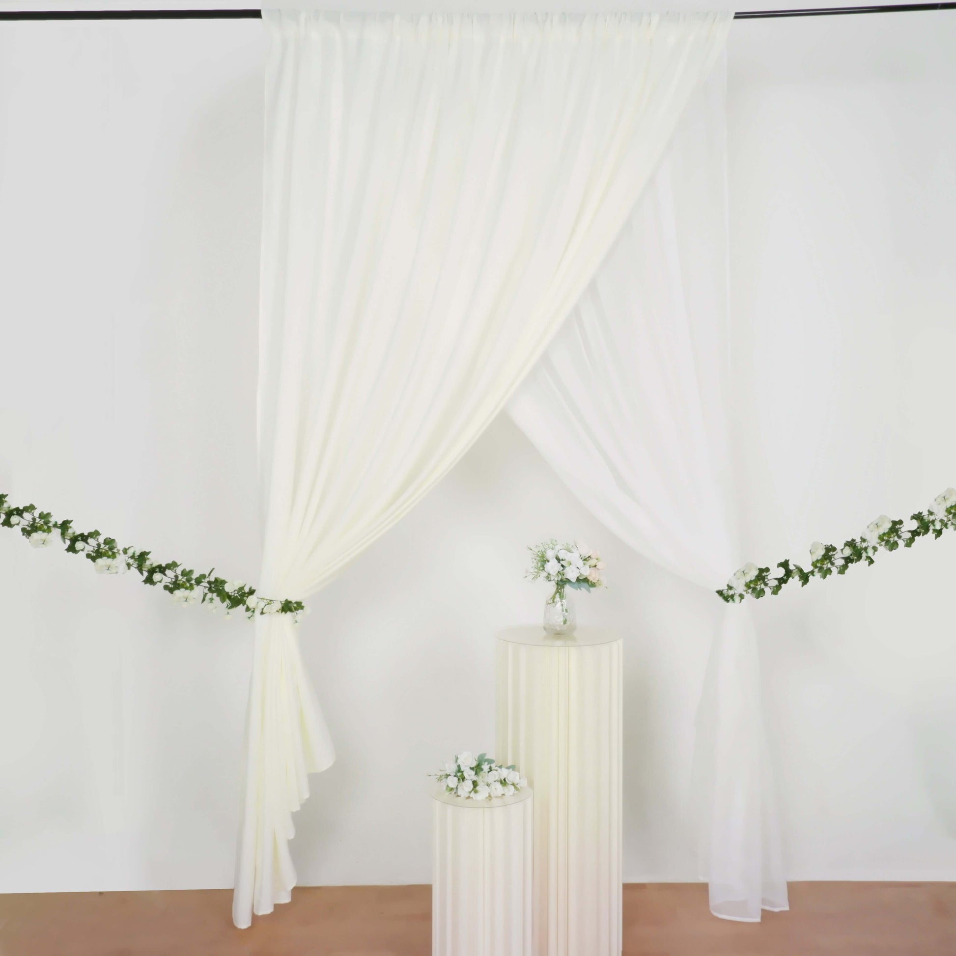 Ivory Chiffon Polyester Event Curtain Drapes, Dual Layer Divider Backdrop Curtain Panels with Rod Pockets - 10ftx10ft