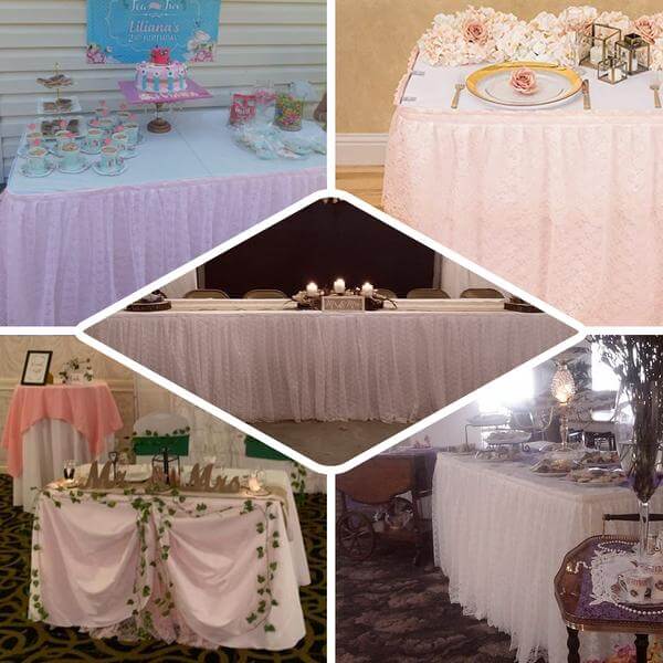Lace 14ft Table Skirt Black Premium Pleated - Vintage Style for Parties