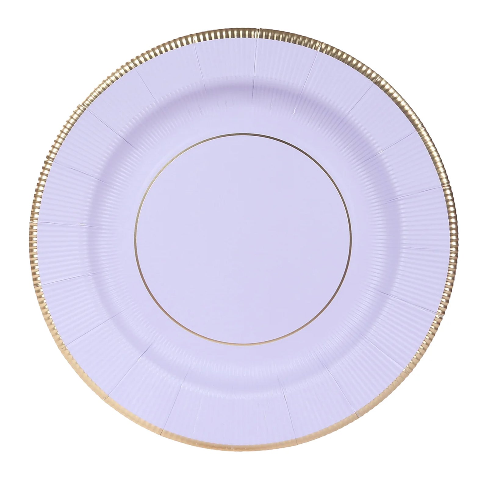 25-Pack Disposable Round Charger Plates in Lavender Lilac Sunray Design with Gold Rim - 350GSM Heavy Duty Paper Chargers 13"
