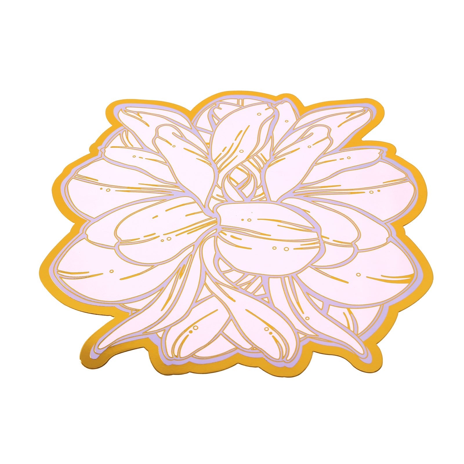 10-Pack Disposable Table Placemats in Lavender with Peony Flower Print & Gold Foil Edges - Lilac 300GSM Floral Cardboard Placemats for Dinner Parties & Gatherings 14"