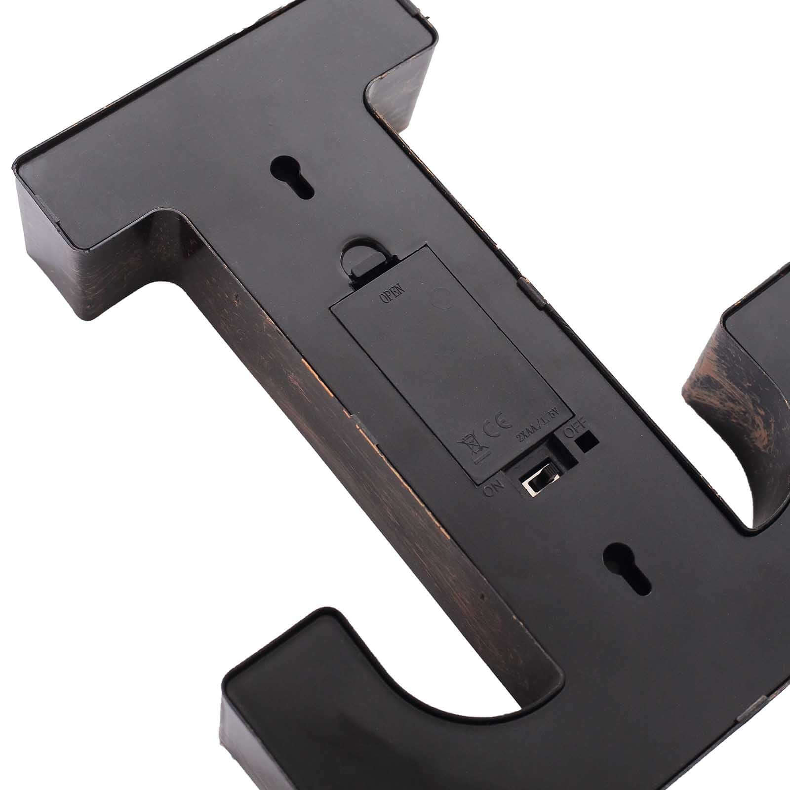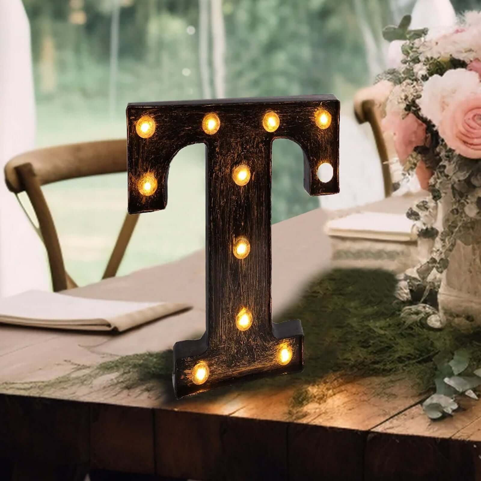 LED Marquee Letter "T" Industrial Style Antique Black - Light-Up Alphabet Sign for Weddings & Displays 9"