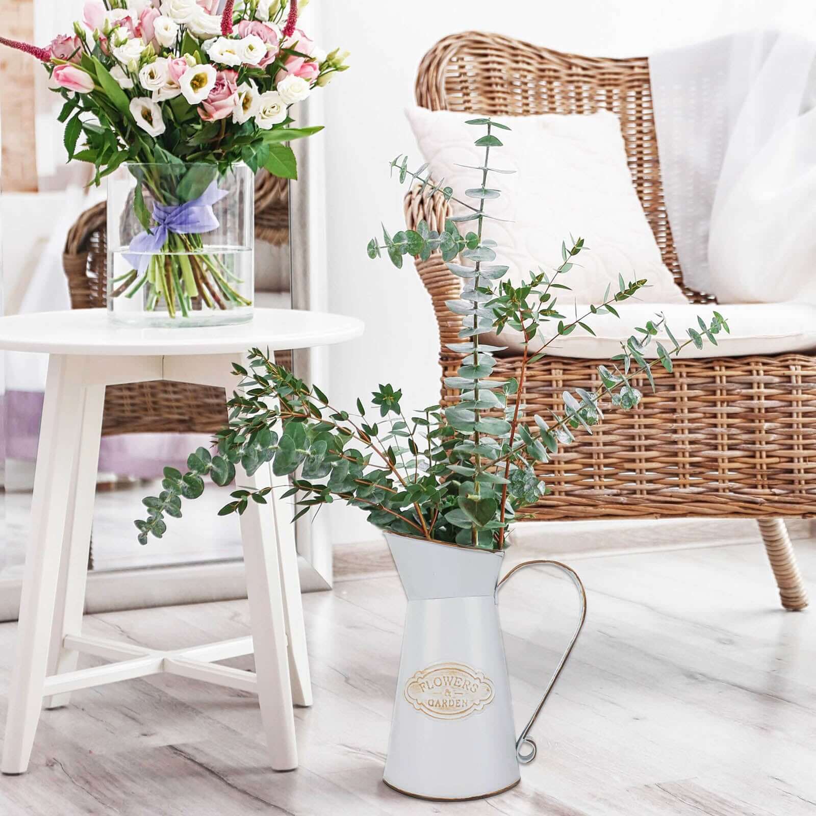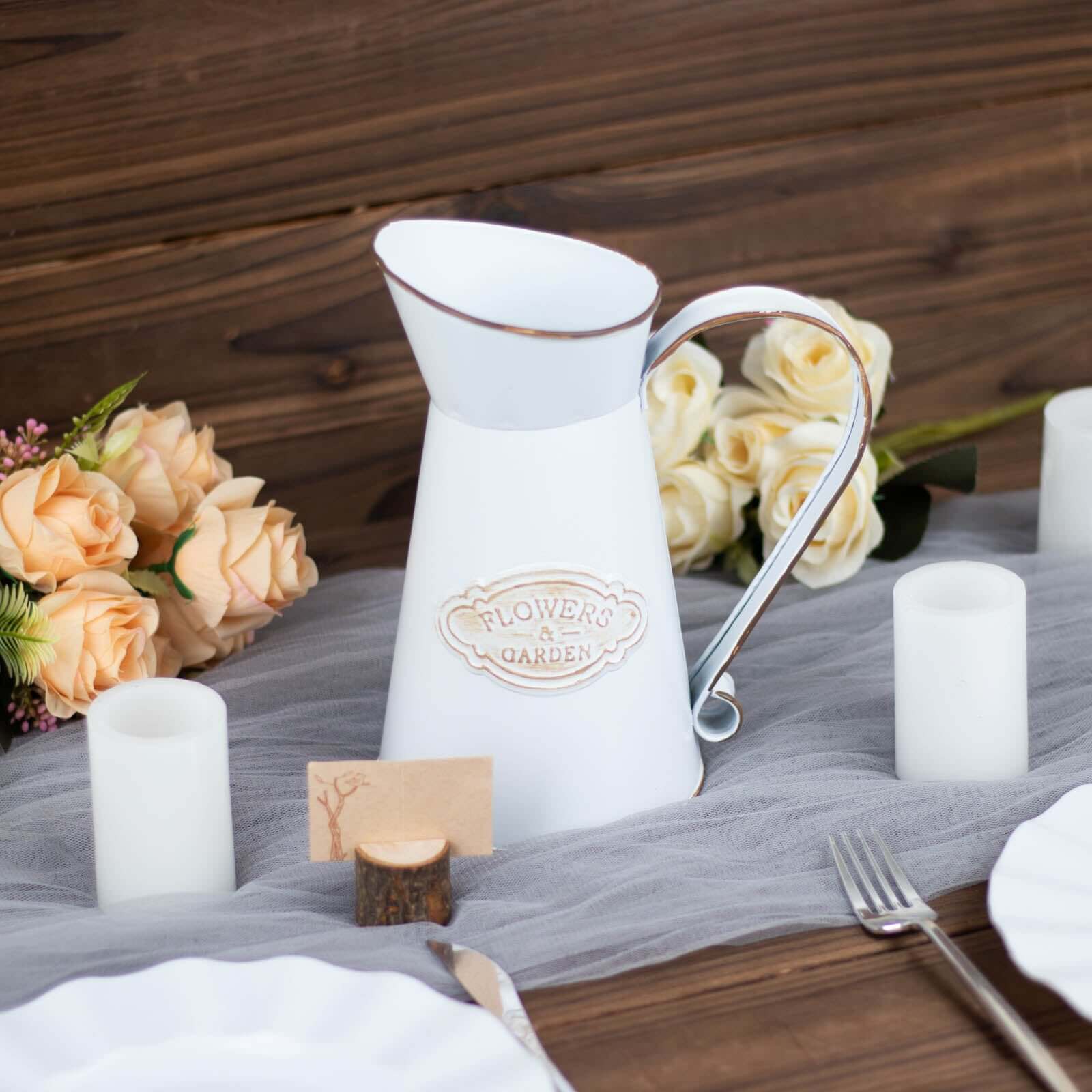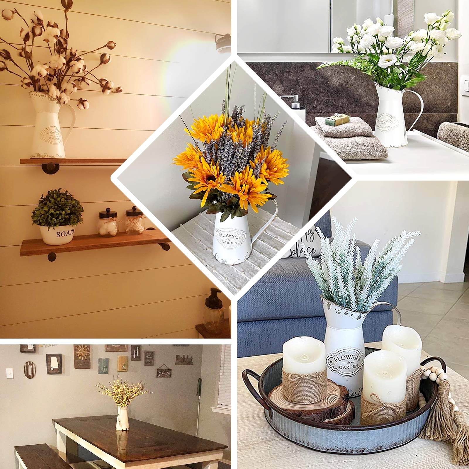 Metal Garden Water Pitcher Rustic Milk Jug Design - Shabby Chic Decorative Flower Vase 9"