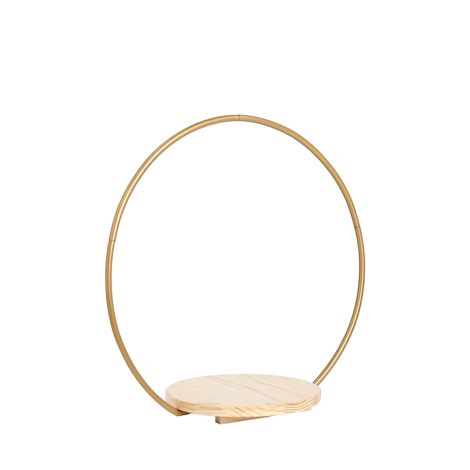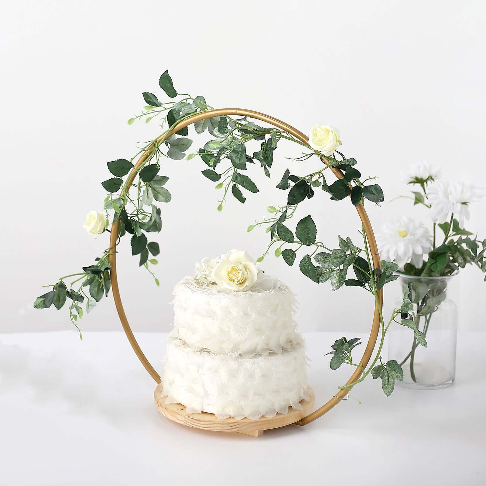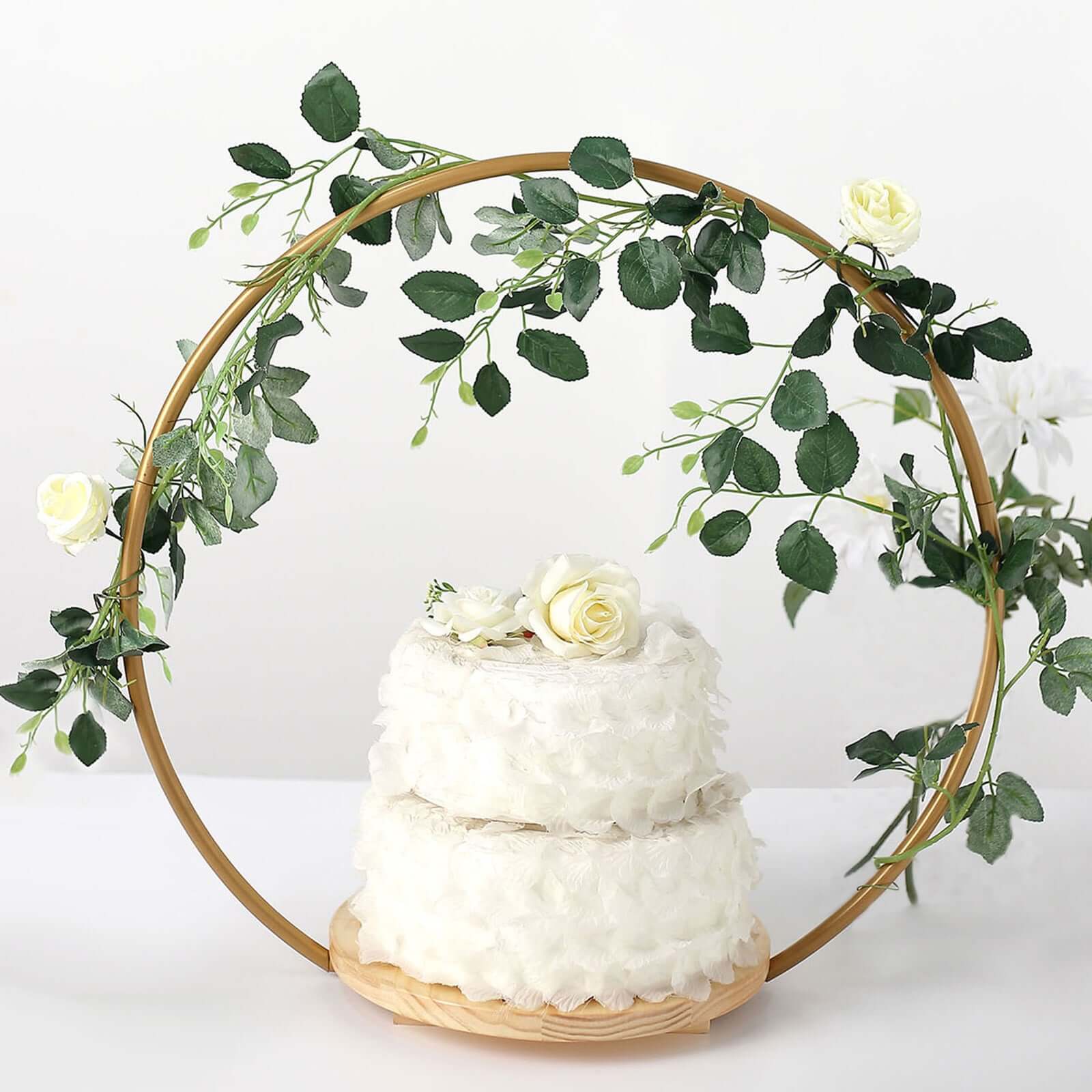Metal Round Floral Hoop Cake Stand Gold - Chic Geometric Dessert Display DIY Centerpiece Table Decoration With Wooden Base 20"