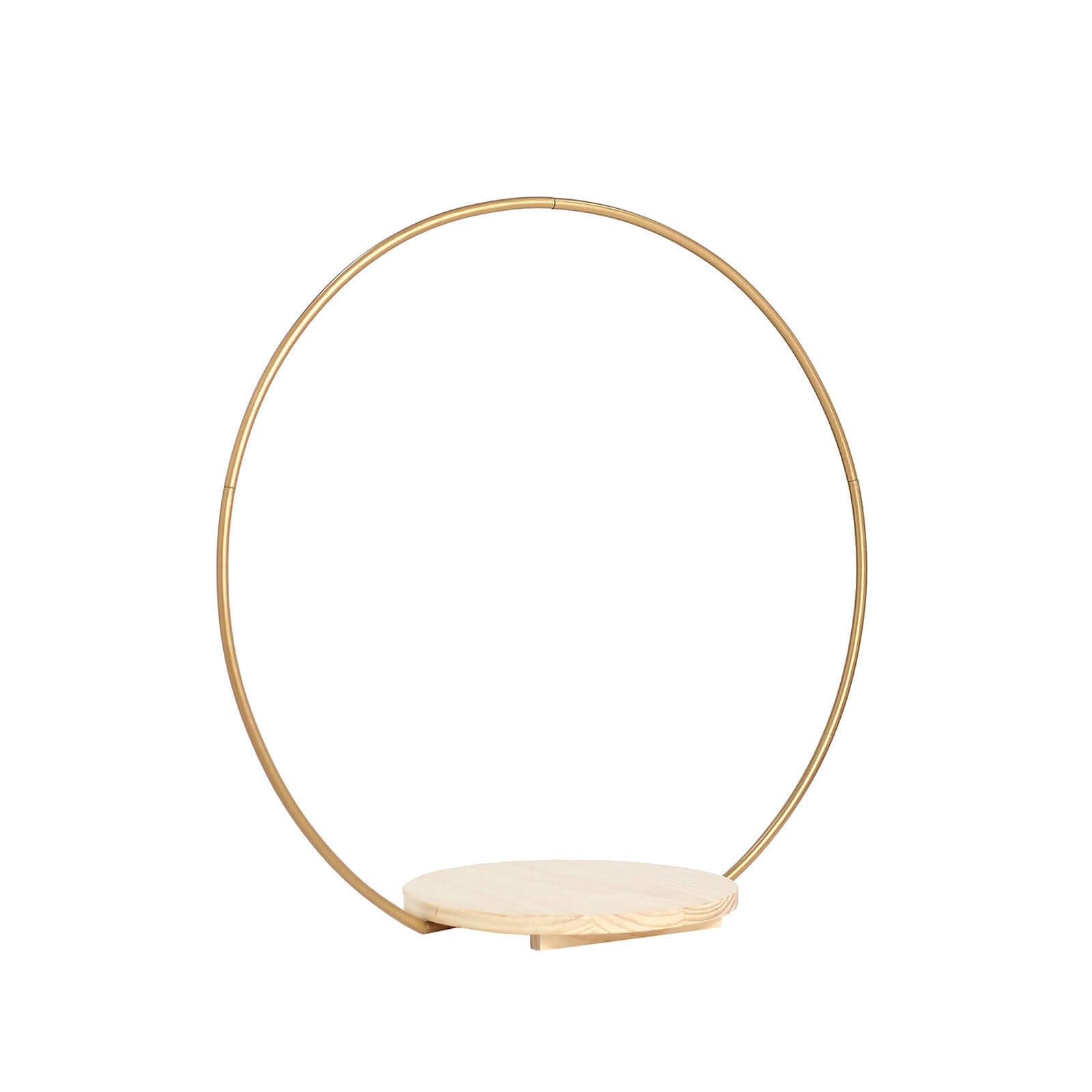 Metal Round Floral Hoop Cake Stand Gold - Chic Geometric Dessert Display DIY Centerpiece Table Decoration With Wooden Base 33"
