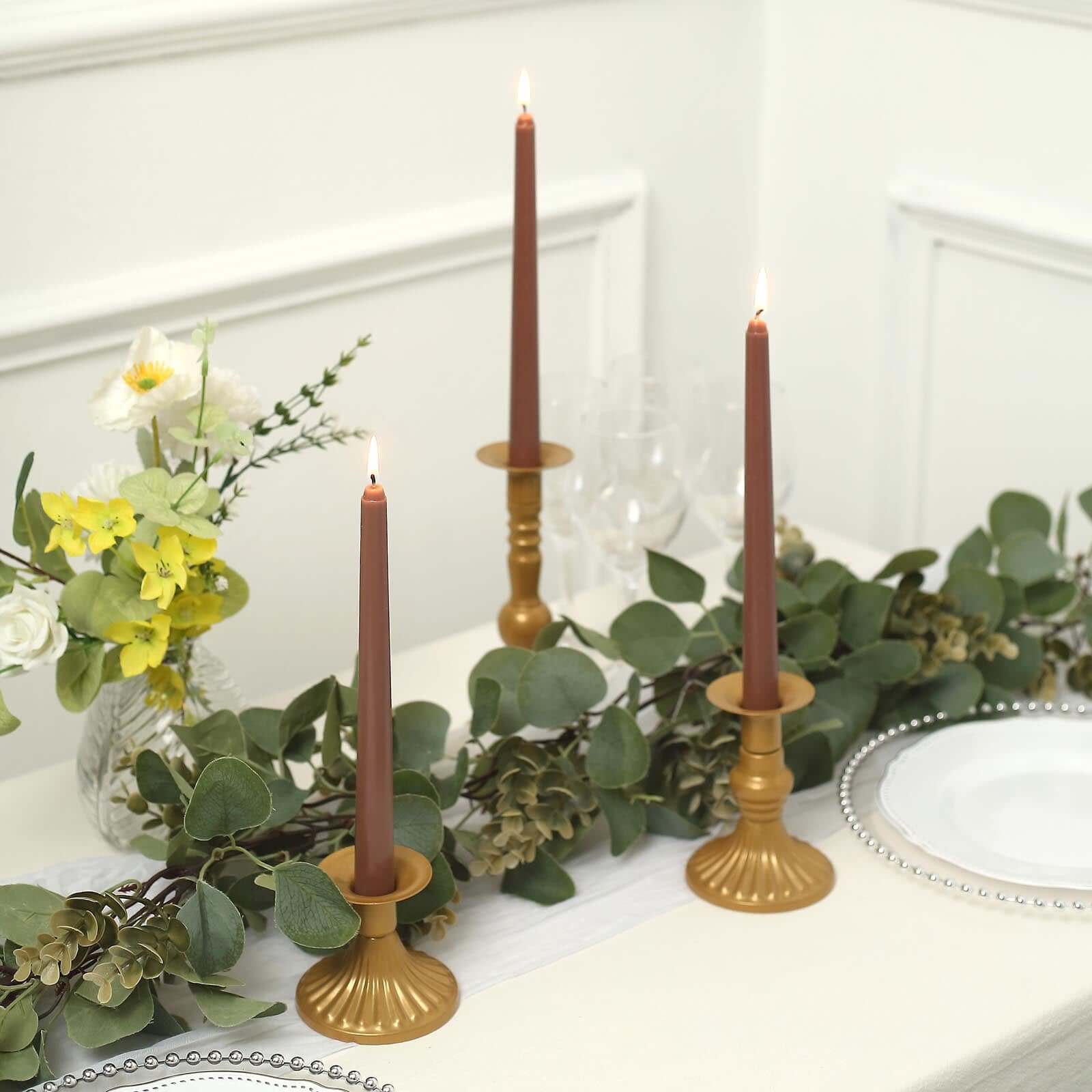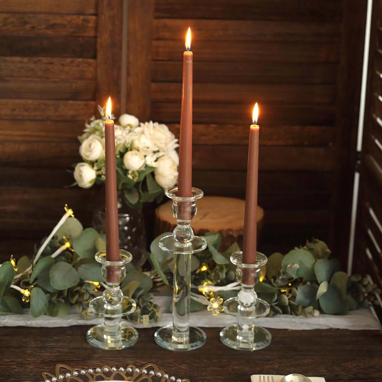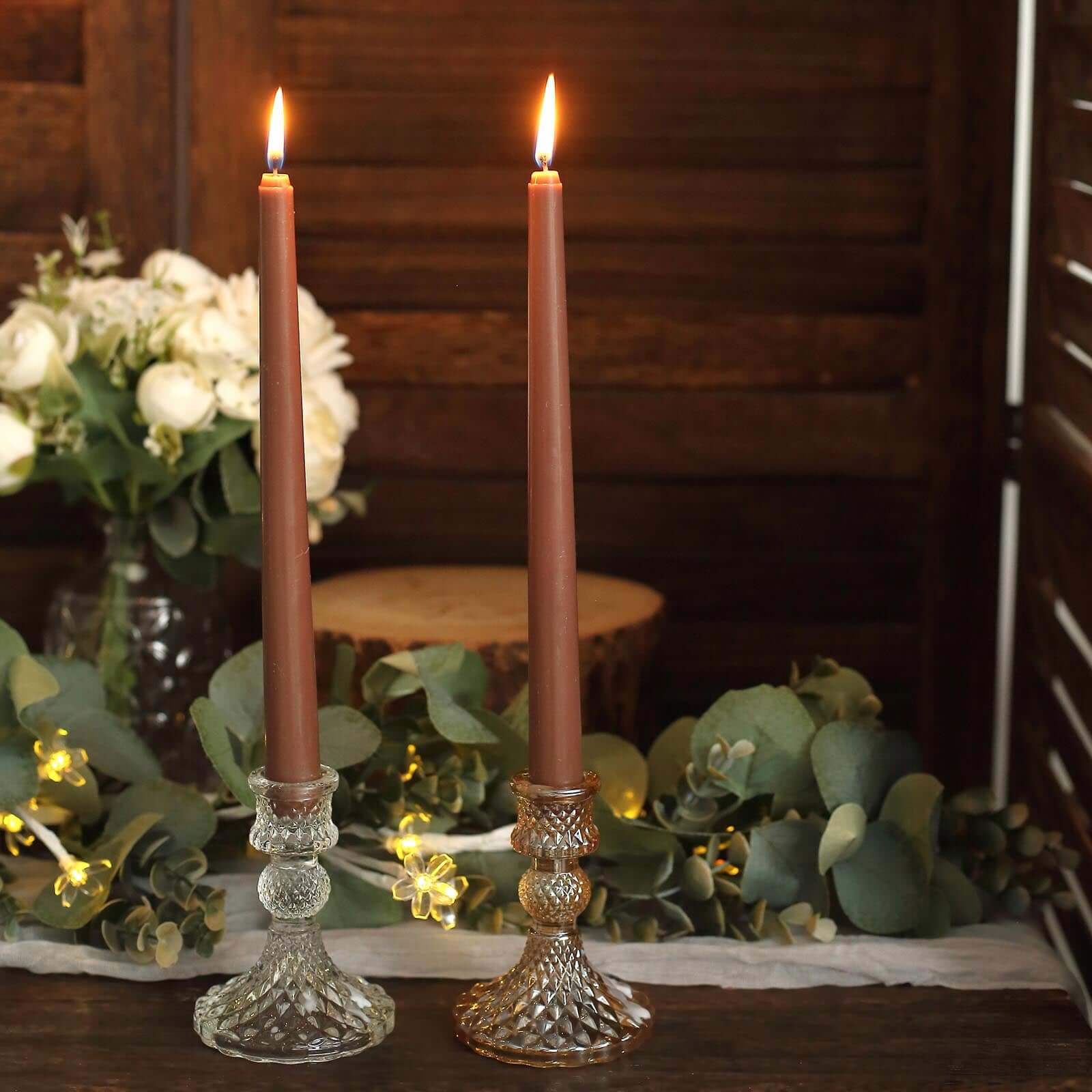 12-Pack Taper Candles Premium Wax Design Mocha Brown - Unscented Candles for Upscale Settings 10"