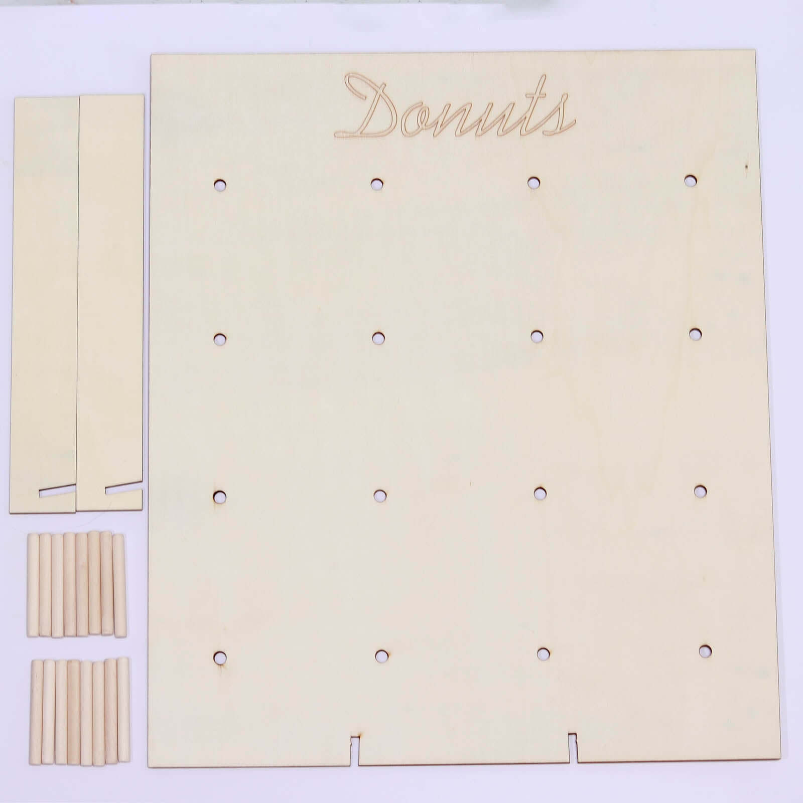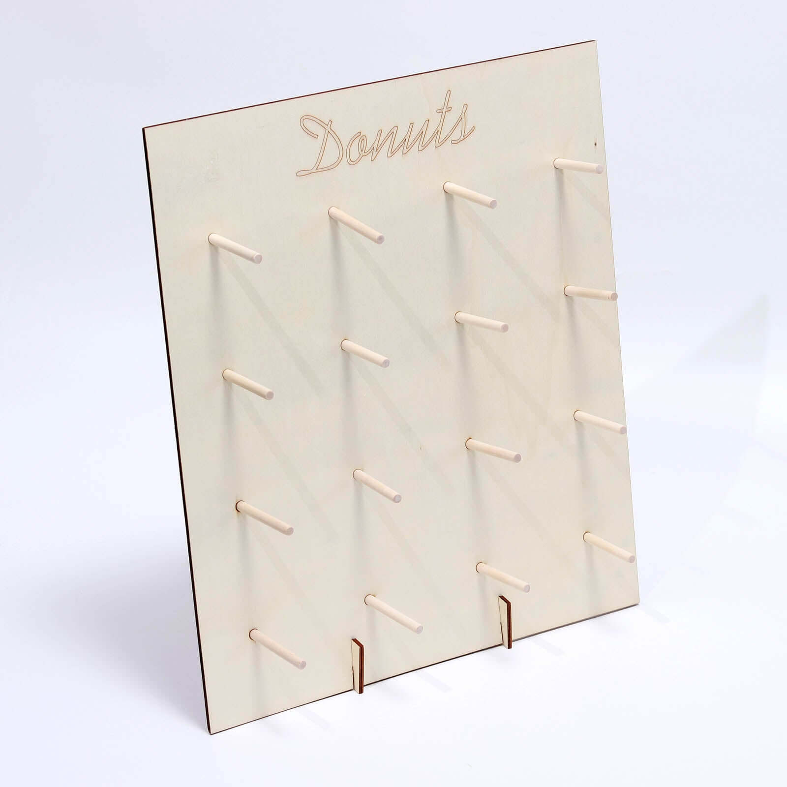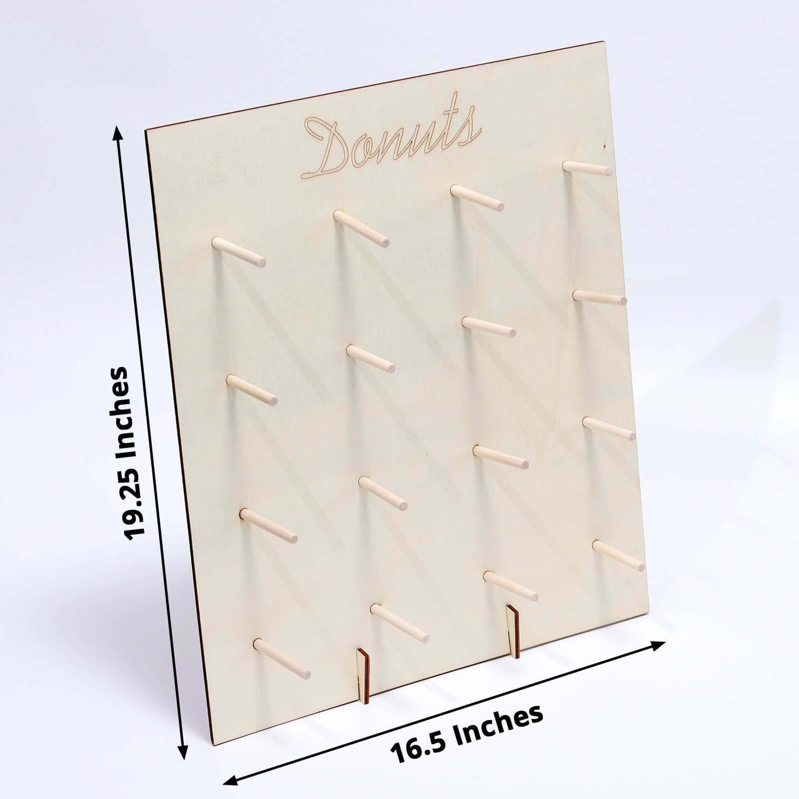 Natural Wood Rectangle Donut Wall Stand - Space Saving Detachable Rustic Chic Doughnut Pegboard Dessert Display Pretzel Bagel Holder 19"