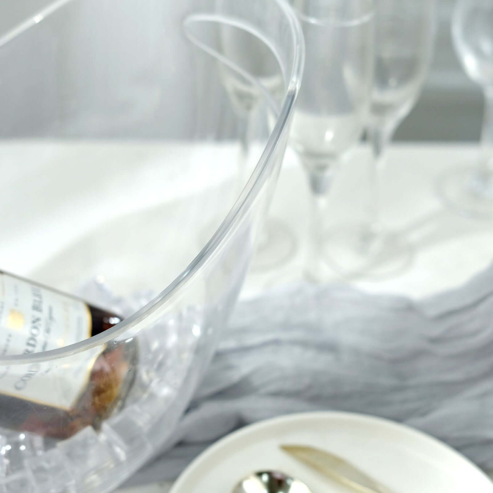 Plastic Ice and Drinks Bucket Clear - Large Capacity Modern Boat Shaped Party Beverage Cooler Storage Tub With Comfortable Handles for Indoor & Outdoor Gatherings 7 Liter