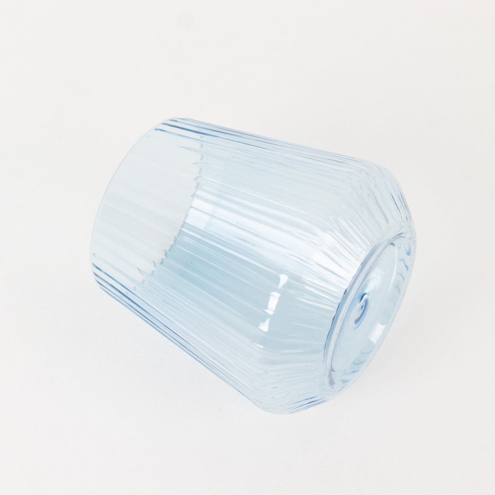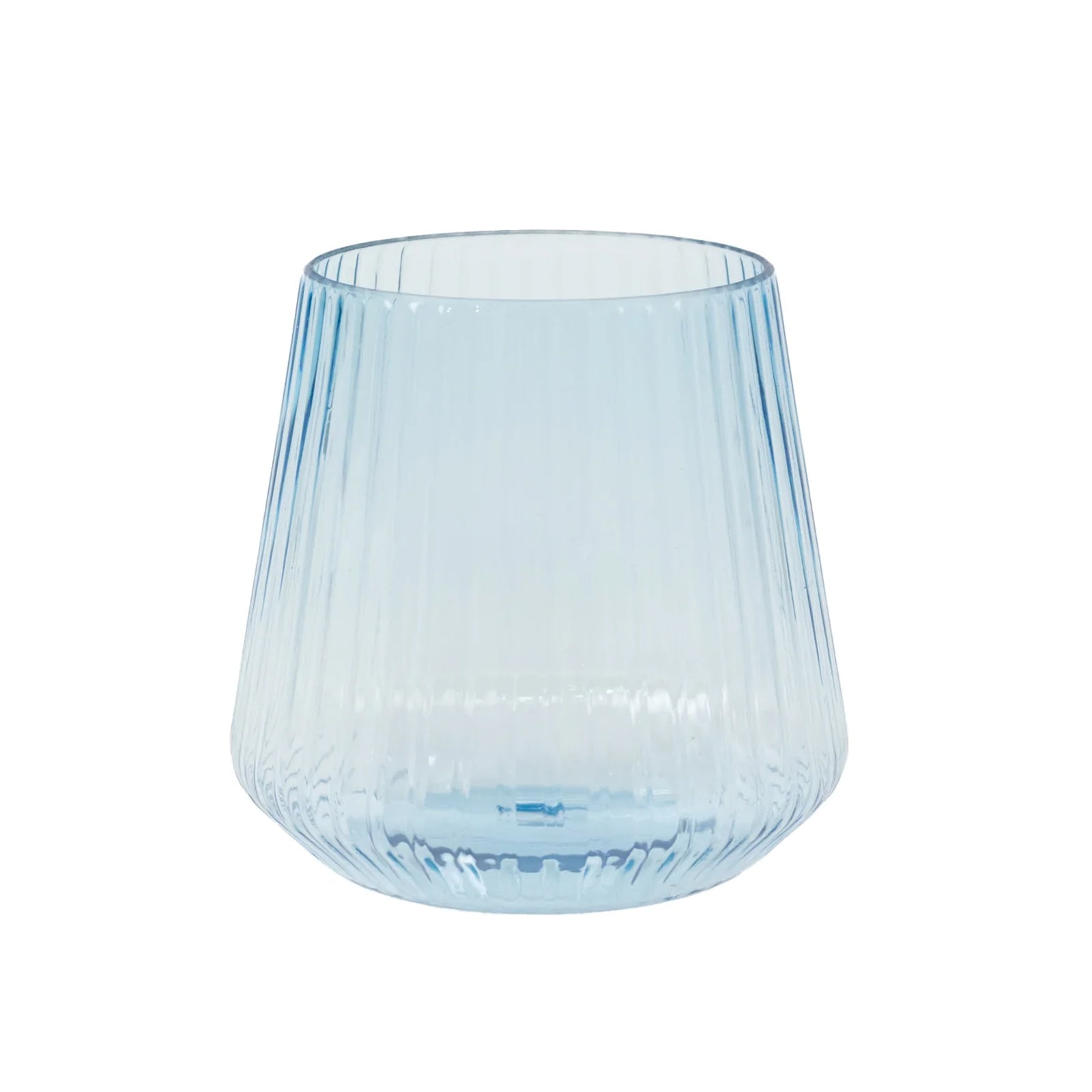 12-Pack Transparent Dusty Blue Plastic Stemless Wine Glasses – 12oz Ribbed Design, Reusable Shatterproof Cocktail Tumblers