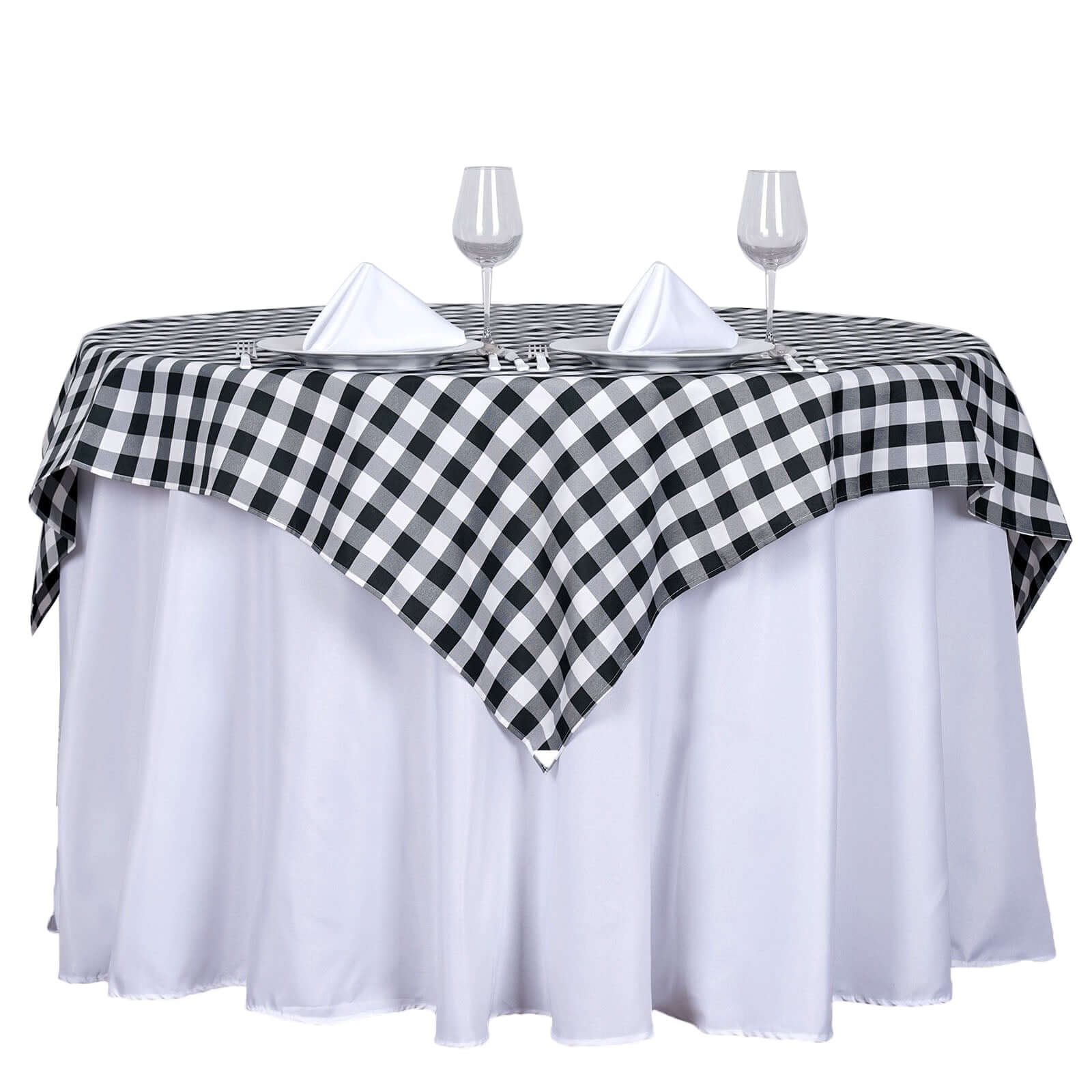 Polyester 54"x54" Table Overlay Square Tablecloth White/Black - Checkered Buffalo Plaid Design for Casual Table Settings
