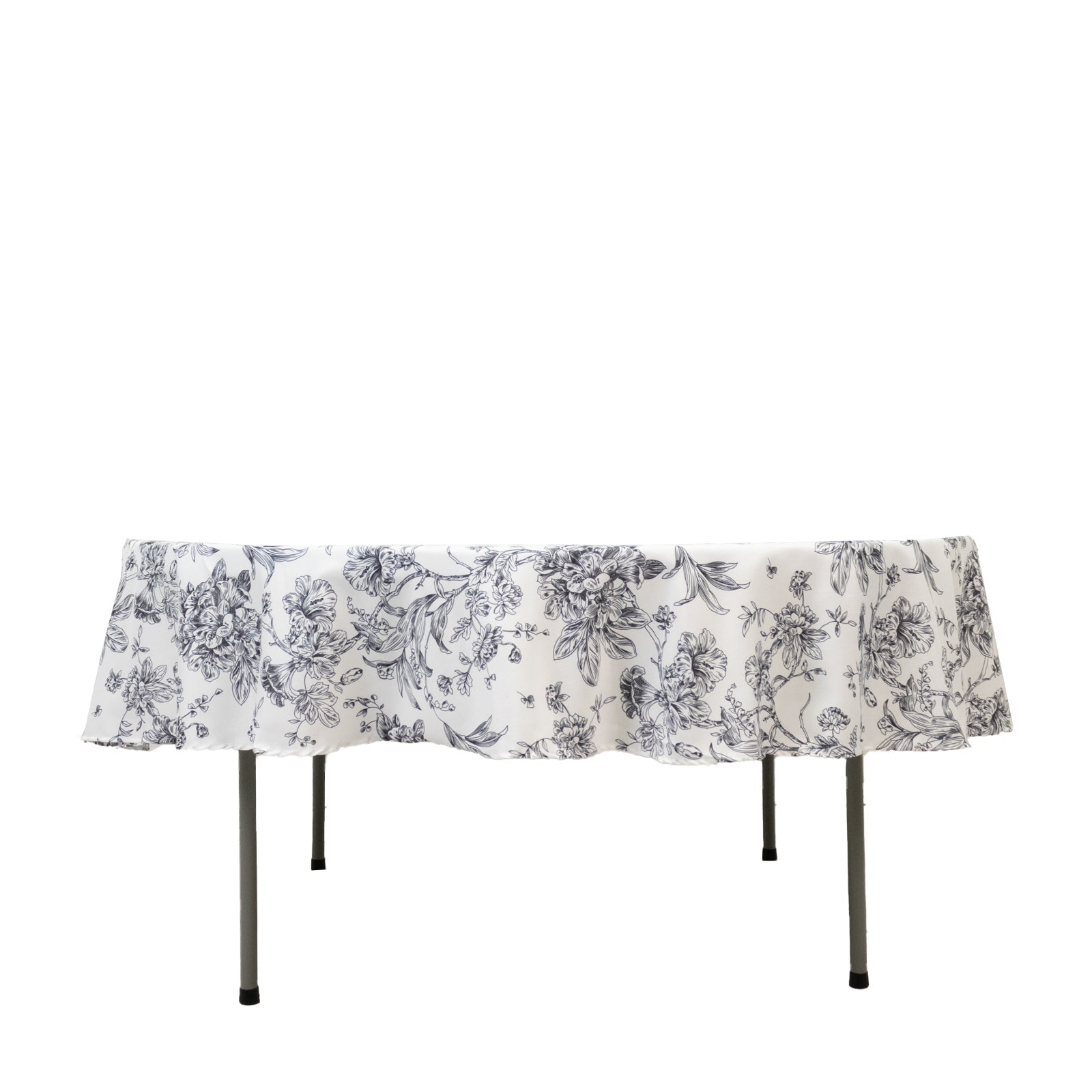 Polyester 90" Round Tablecloth White - Black French Toile Pattern for Chic Weddings