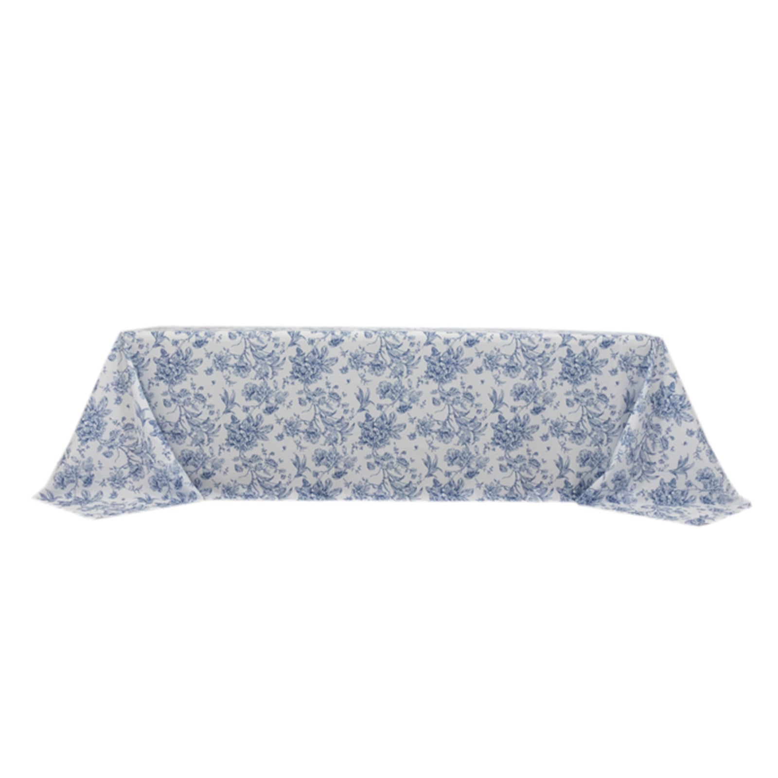 Polyester 90"x156" Rectangle Tablecloth White - Seamless Blue French Toile Pattern for Chic Weddings