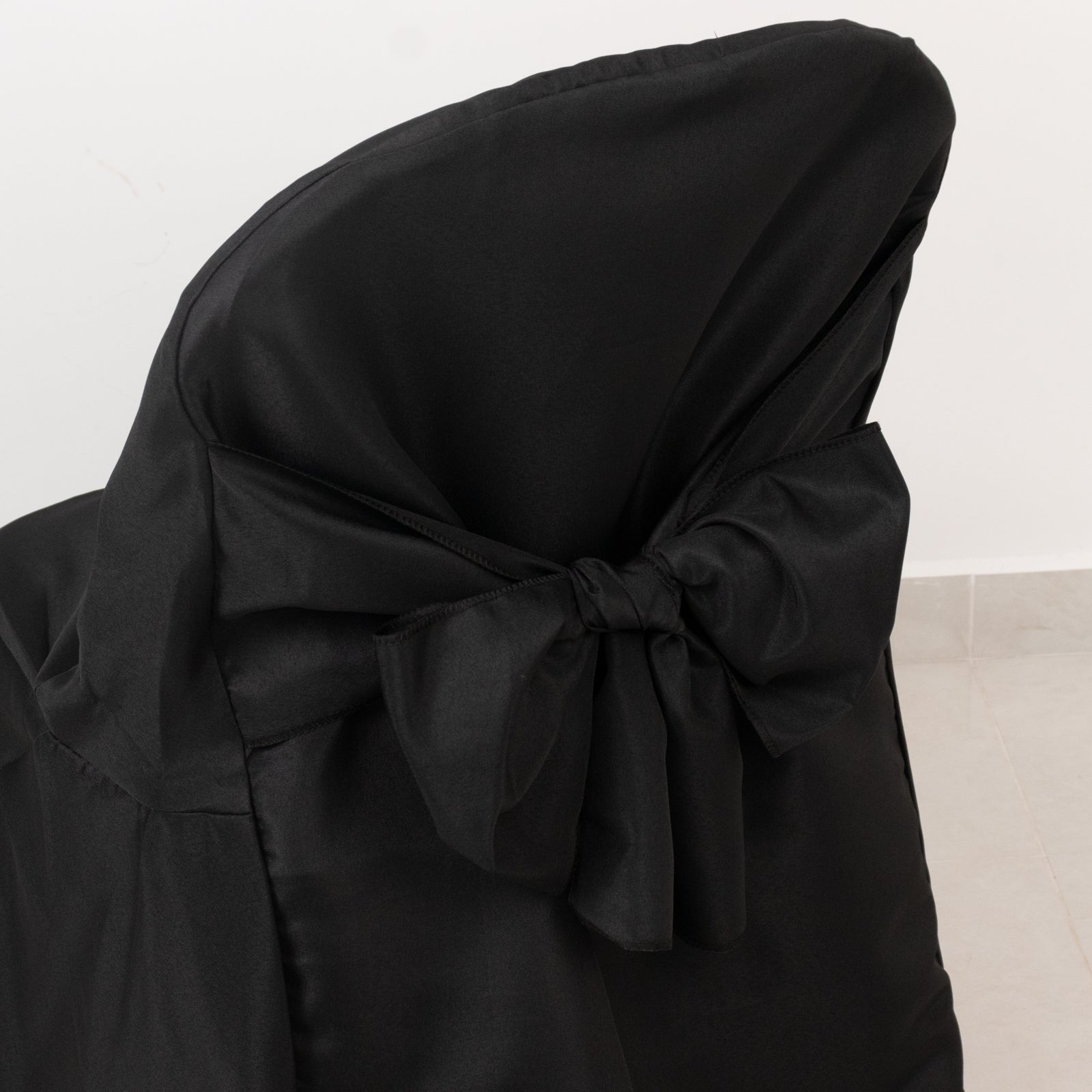 10-Pack Polyester Slip-On Folding Chair Covers with Attached Sashes – Black Durable Reusable Covers for Wedding & Event Decor