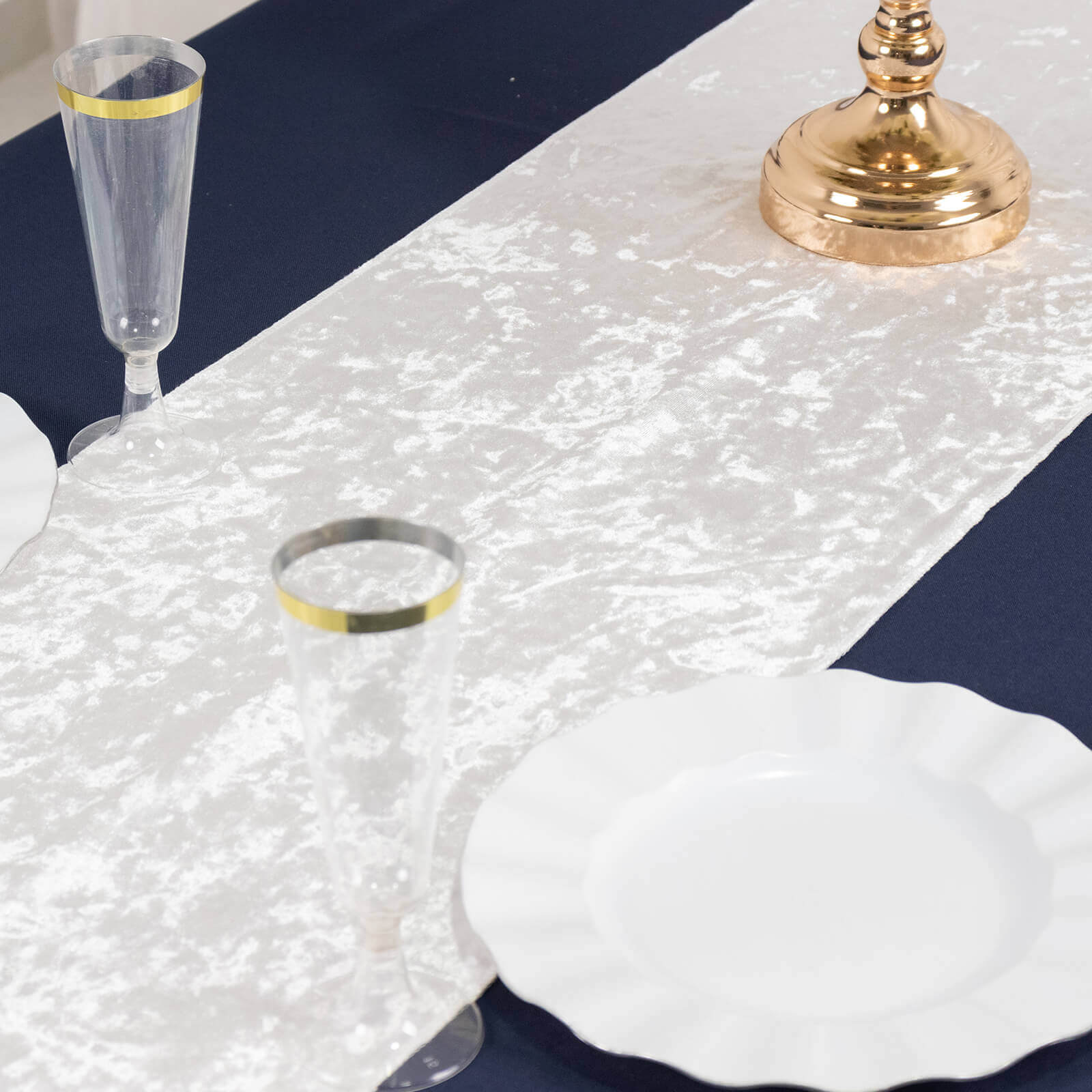 Premium Crushed Velvet 12"x108" Table Runner White - Soft & Wrinkle-Resistant Table Linen for Events