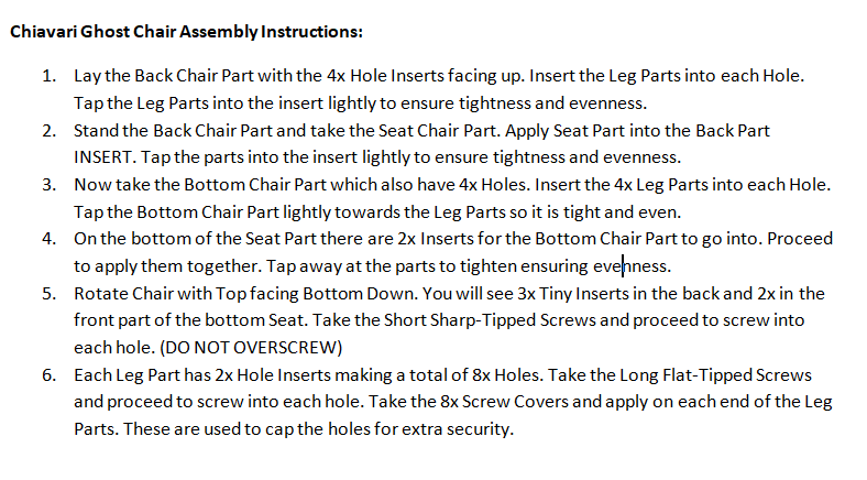 - Chair Parts: