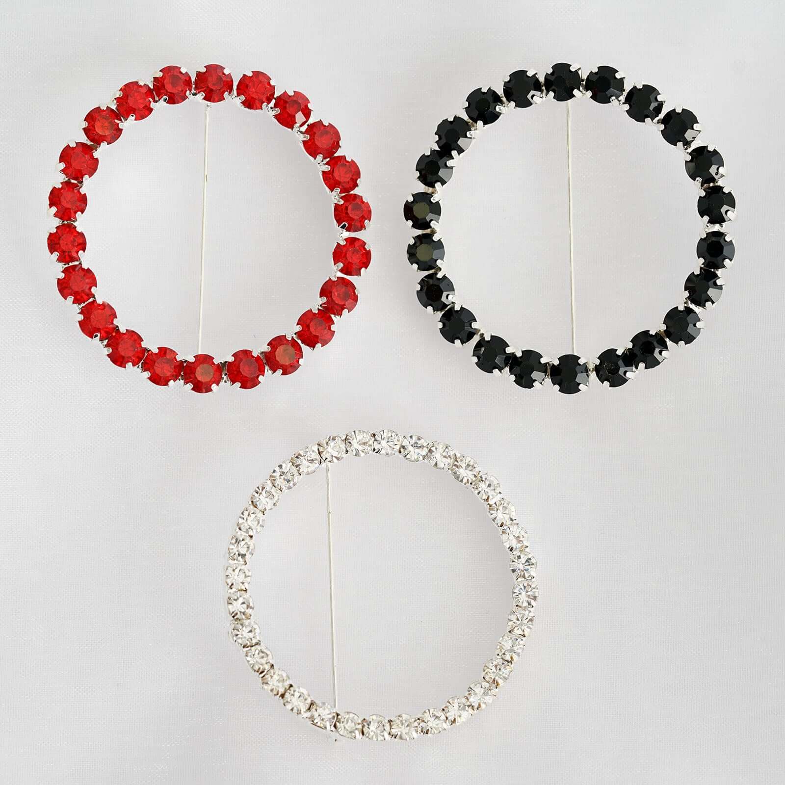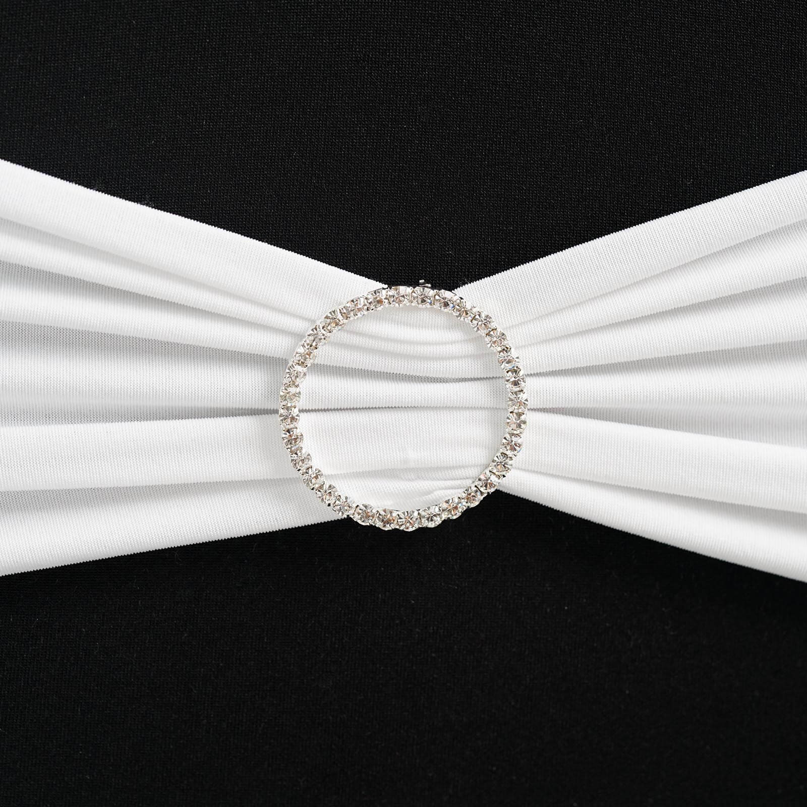 Rhinestone Chair Sash Band Buckle Silver 2" Circle Metal - Glittering Diamond Bow Pin for Chair Sashes & Wedding Decor