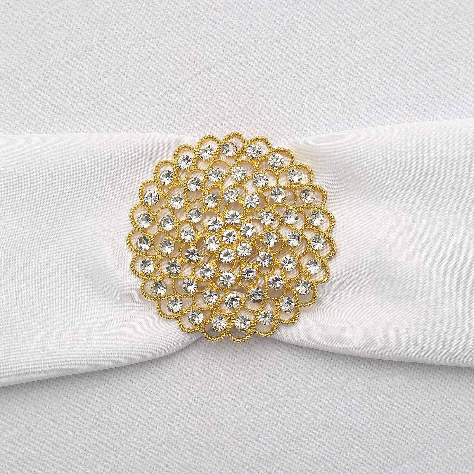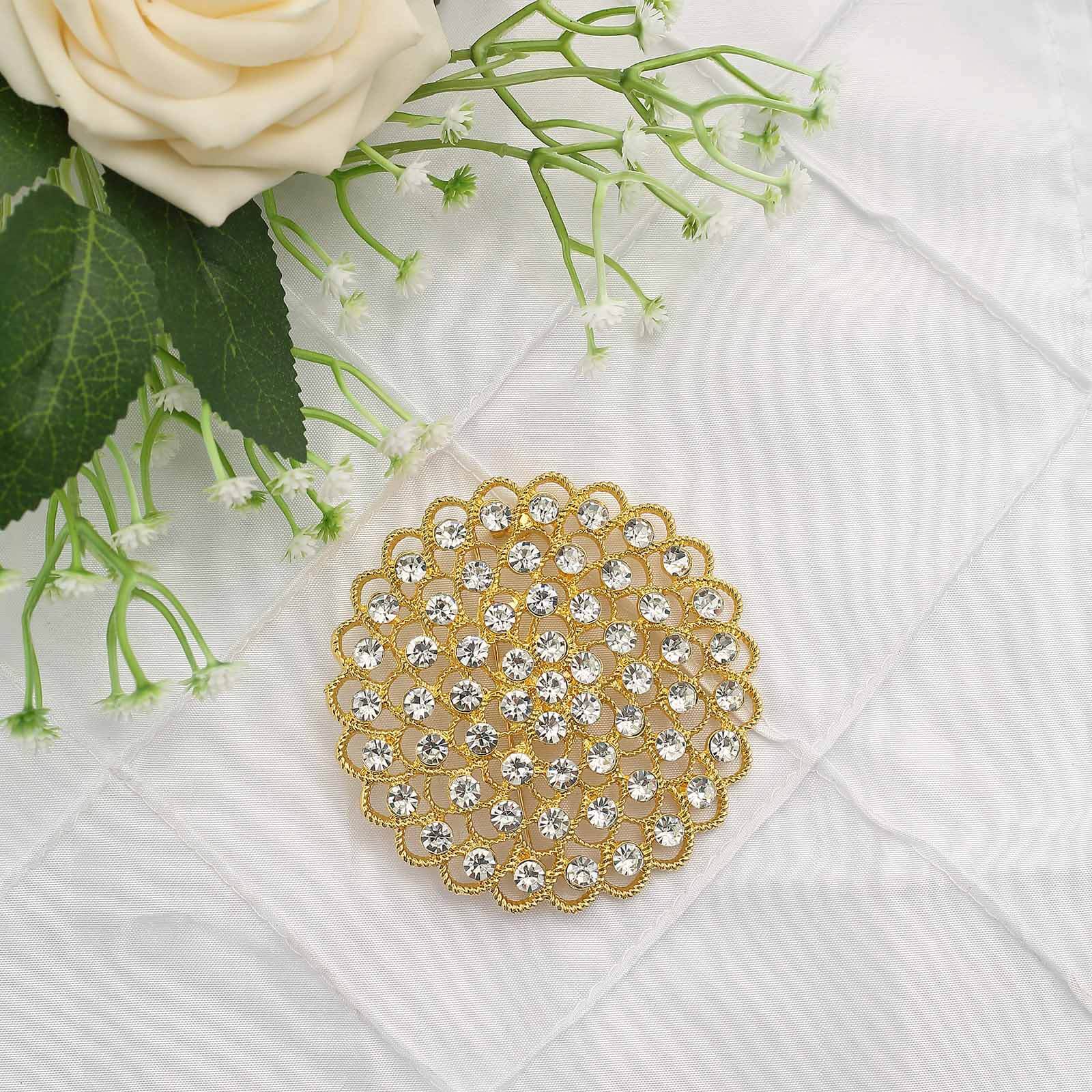 Rhinestone Metal Flower Chair Sash Band Buckle Gold - Glittering Diamond Accent for Weddings & Celebrations 3"