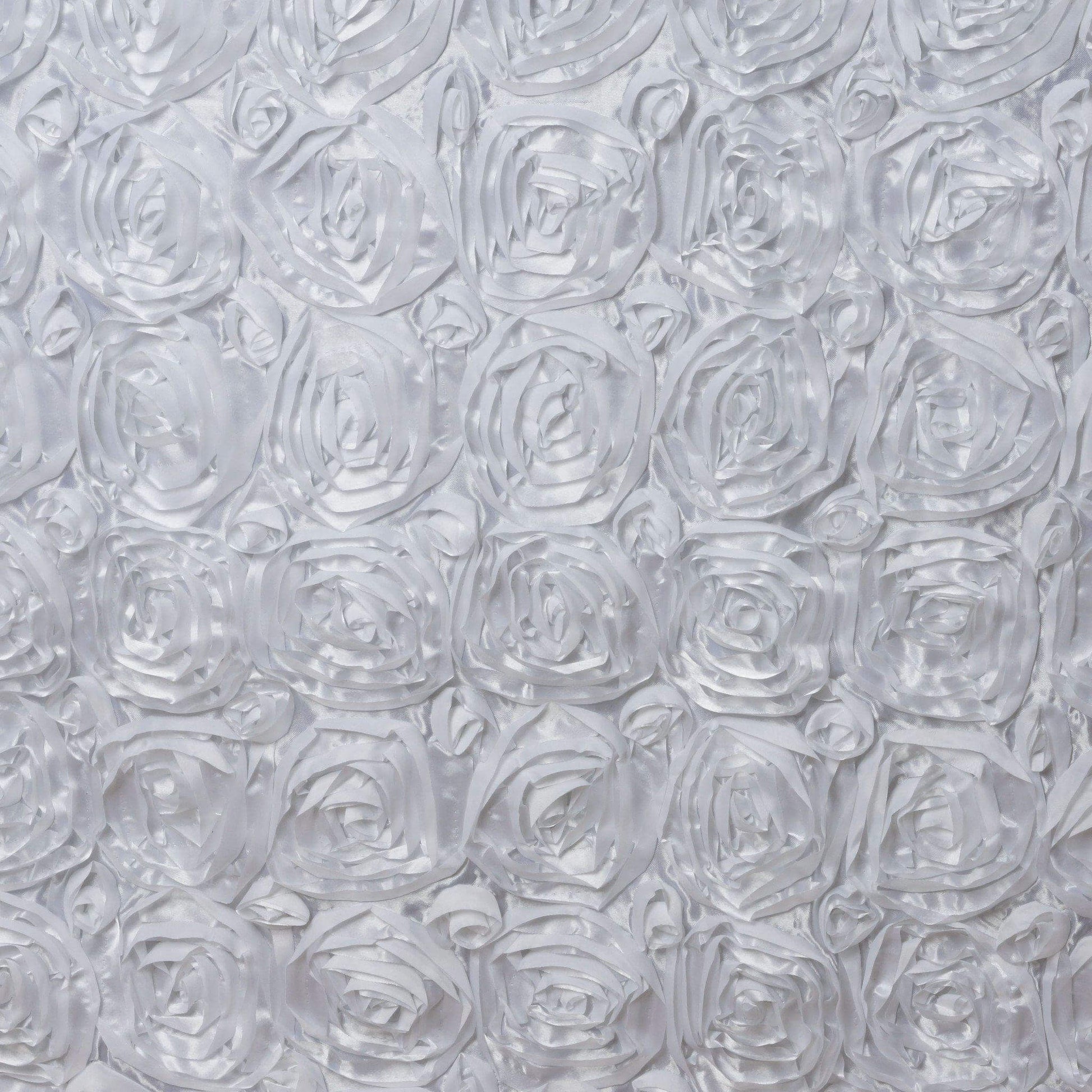 Rosette Satin 21ft Table Skirt White 3D Floral Design - Sophisticated Event & Wedding Table Cover