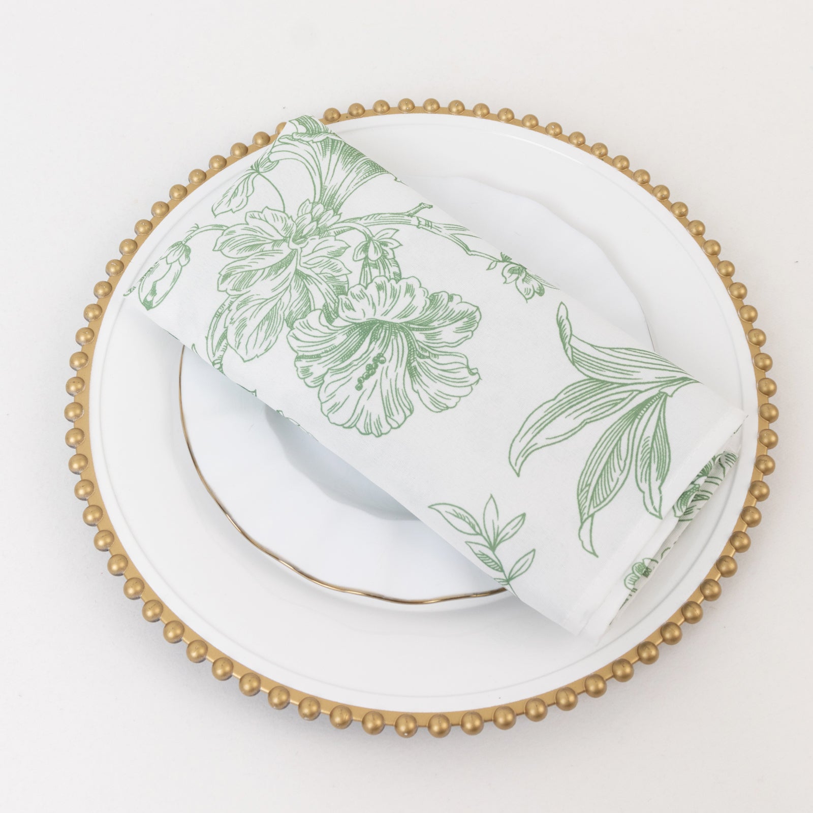 5 Pack Polyester 20"x20" Dinner Napkins White with Dusty Sage Green French Toile Pattern - Reusable Floral Cloth Napkins