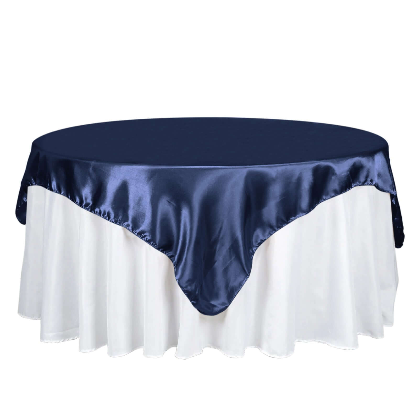 Satin 72"x72" Table Overlay Square Tablecloth Navy Blue - Smooth Finish Table Cover