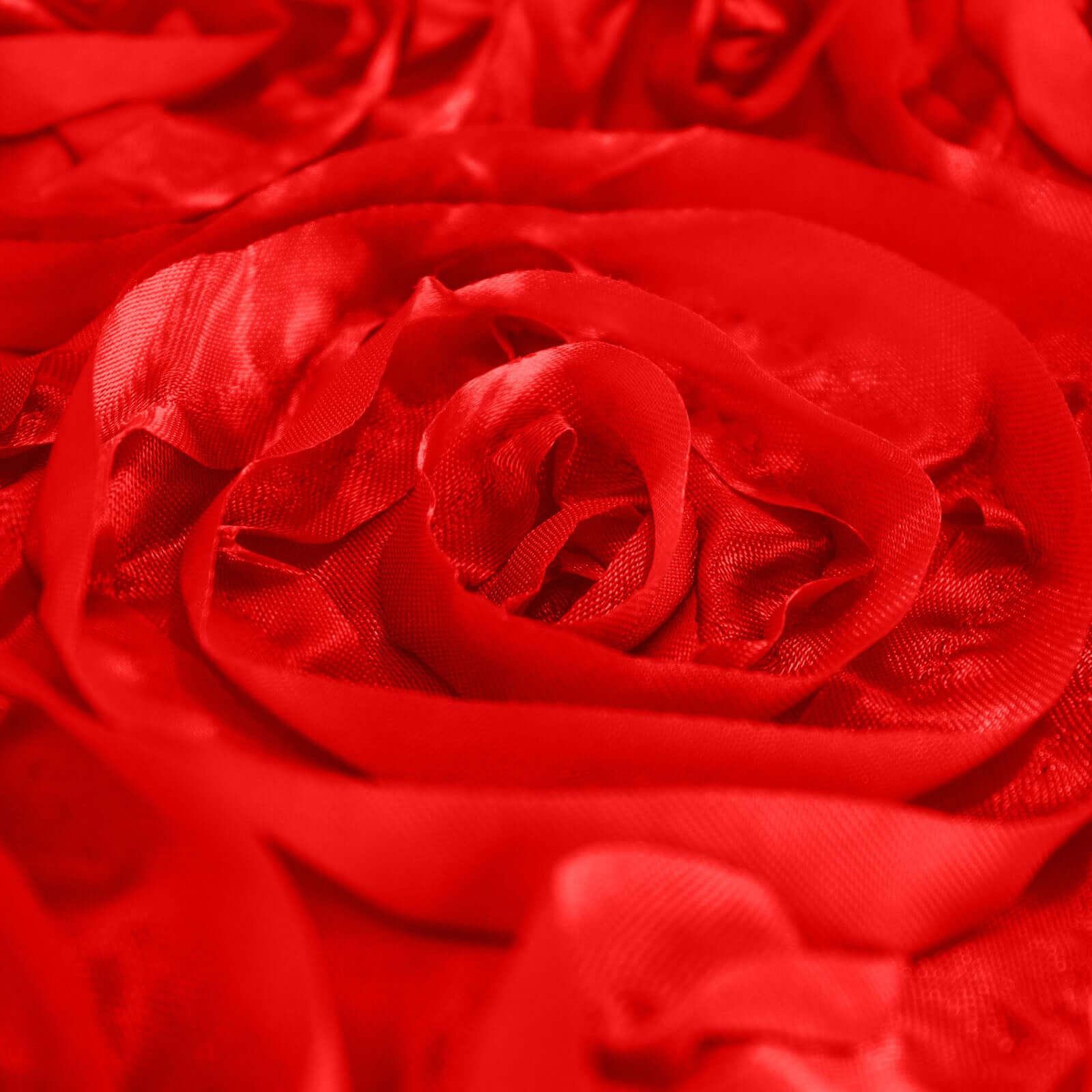 Satin 90"x132" Rectangle Tablecloth Red - Grandiose 3D Rosette Seamless Table Cover
