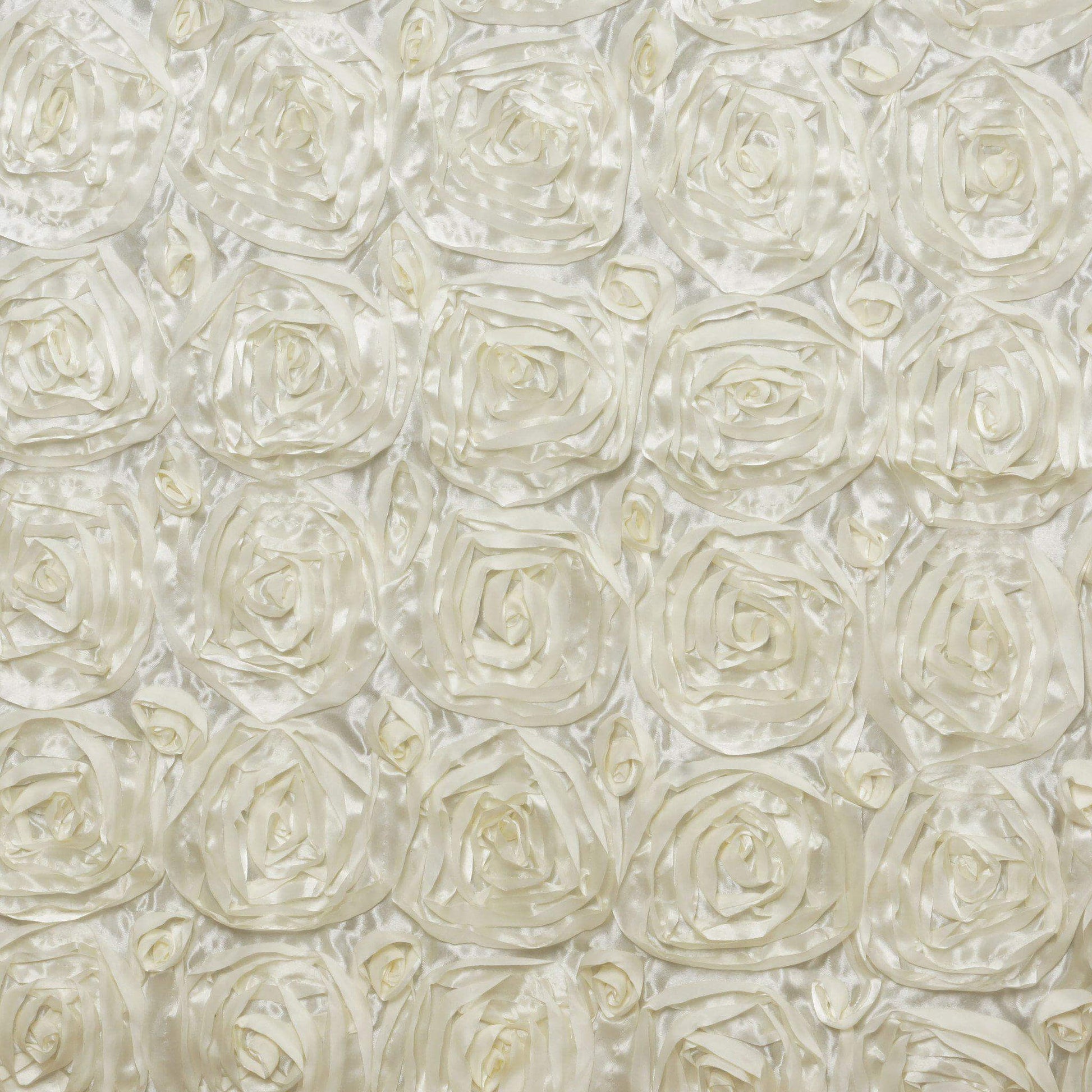 Satin 90"x156" Rectangle Tablecloth Ivory - Grandiose 3D Rosette Table Cover with Seamless Finish